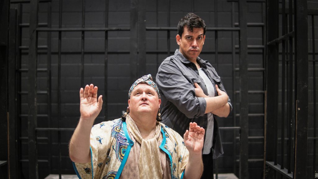 Novel by Manuel Puig; Music by John Kander; Starring Kenneth Wayne (Molina), Juan Pereira (Valentin), Erin Royall Carlson (The Spider Woman), Karli Rose Lowry (Marta), Casey Matern (Molina’s Mother), Alvaro Cortez (Warden), Derek Green (Gabriel), Andrew Taula (Estaban), Jaime Fuentes (Marcos), Jared John Tuckett (Amnesty Intl. Observer), Eric Christian Lash (Aurelio), and Abel Benitez, Bryan Andrews and Coulson Bingham as prisoners; Directed by Johnny Hebda; Choreographed by Ashley Gardner-Carlson; Music Direction by Anne Puzey; Production Design by Cara Pomeroy; Costume design by Michael Nielsen; Lighting design by Bobby Cody; Presented at the Sorenson Unity Center.