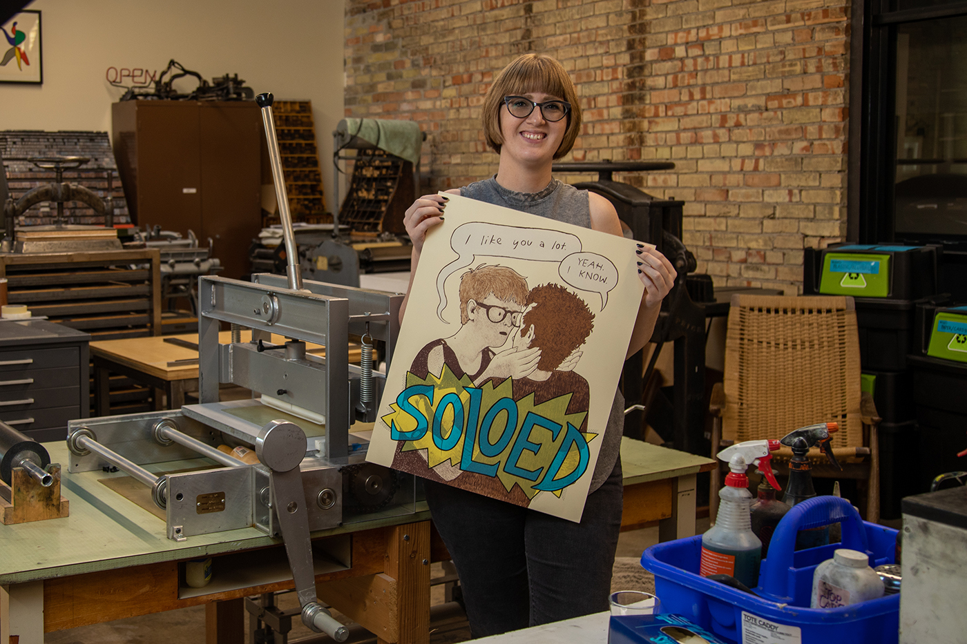 Jeffery’s definition of success as a Utah comic and printmaker has little to do with fame and fortune. “The goal is to make work,” she says. She strives to have enough conventional success through traditional means that she may uplift her community of fellow creatives. At one point in her career, Jeffery had just graduated her MFA program and moved back to Salt Lake City from Kansas with little idea what her path would be. She found immense support and motivation in her hometown community and was able to establish herself thanks to their help and kindness. Jeffery has intentions to reciprocate this whenever possible. Additionally, she finds a fulfilling balance outside of making art by “educating, curating, and building up others work,” she says.