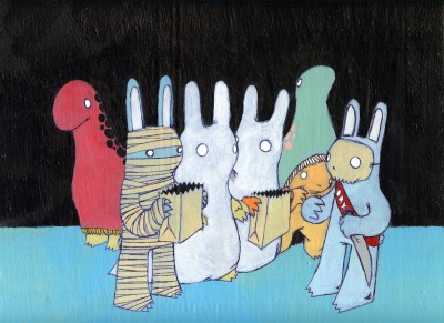 The Unknown Gallery located at 353 West 200 South in downtown Salt Lake City was last year’s new little darlings on the scene. They brought us D.J.s and models to spice things up, but for Aug. they kick the heat up a notch with eleven intense—not to mention talented—artists from California. The show is entitled “Friendless Outsiders” and while some of the artists may seem like outsiders to us, they are well known on the west coast and I welcome them to the Salt Lake scene. The grouping is unbelievable. Each of these artists have shown all over the United States, an a few have had their work showcased on the world stage as well. Ogi, who just finished a t-Shirt design for Weezer, also recently finished a postcard book: War of the Monsters and is being featured in a digital zine from Italy. Deth P. Sun exhibits no less than 8-10 shows a year Omar Lee has done freelance work for the Village Voice, Bitch Magazine, New Times, Sony Music and currently, Business Weekly and Tivo. Other famed artists include Derek Wood, Jake Gabel, Bailey Winters, Evan Fah, Jeana Sohn, Brendan Monroe, Derek Mccall and Marci Washington.