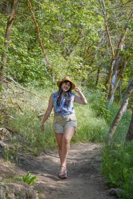 Since I need clothes that I can be active in, comfort and function always come first. My favorite way to balance style with comfort is to start with basic, functional pieces and build a look using accessories from there. I’ll usually take a simple tank top and solid hiking shorts and add a cool button up shirt with interesting color or print, funky socks or Chacos and either a hat or bandana in my hair to complete the look. The nice thing about hiking accessories is they are designed to be functional. A hat or bandana might tie together all the elements of my look, but they also protect my head from the sun or rain. A flannel overshirt might add some color and print to my outfit, but it also allows me to layer for longer hikes that might have varying temperatures along the trail. It’s also important to know that you don’t need to spend hundreds of dollars on high-tech hiking clothing. I got my first pair of hiking books from a thrift store for $10 and all of my unique layering pieces are also secondhand. If you do want to find more name-brand, high quality outdoorsy clothing, check out thrift stores like Plato’s Closet, Uptown Cheapskate or Indy Clover. I own some nice Patagonia gear, but I’ve never bought it new or full price! Looking for cool hiking pieces at second-hand stores has added an element of fun to my style that can only come from the high of finding $50 new-with-tags hiking shorts for $8 at a thrift store.