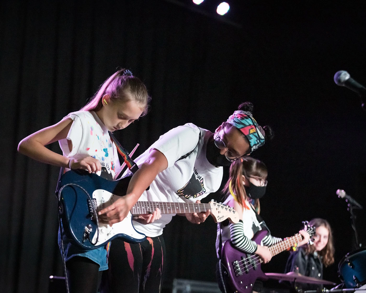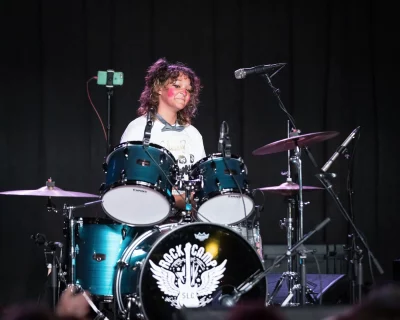 As each camp spans the course of a week, McDaniel describes a typical day at camp as starting with a morning assembly to pump everybody up. The kids are given time to learn from volunteer instrument instructors and attend workshops that cover everything from songwriting to community care and mental health. Campers are also treated to a Tiny Lunch Concert; “We get a local band that’s [a] female-, trans- or nonbinary-fronted band to come and play,” McDaniel says.