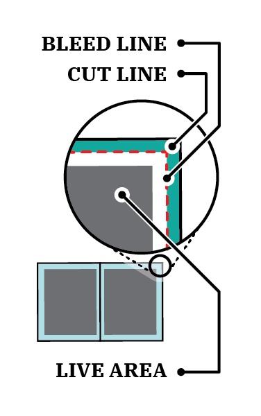 Images, color backgrounds and other artwork that is intended to bleed past the gray area into the cyan must stop right at the bleed line.