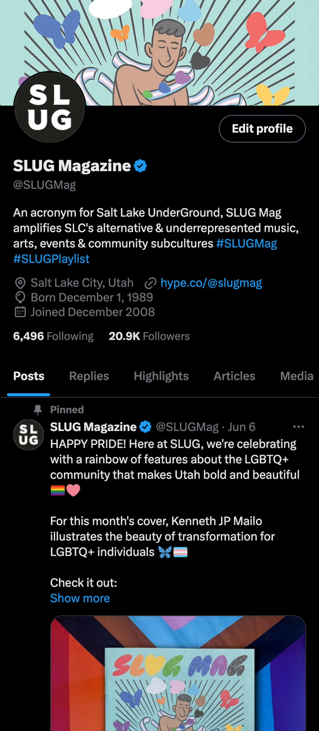 SLUG Mag’s mission is to amplify Salt Lake City’s thriving alternative and underrepresented music, arts, community and events subcultures with thoughtful media coverage and event curation. We do this by producing our monthly print edition, a bi-weekly podcast focused on local music, monthly events and more.