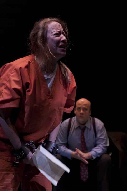 McDougal, who ends up just as crazy as Starr, is a compound image of oppressed groups––a victim of the U.S. prison-industrial complex, of the torture we now associate with Guantanamo Bay, and someone abject simply for the crime of being an honest, middle-aged woman. Her character is more ambiguous than Starr’s and thus altogether more interesting. April Fossen, who recently played another much less formidable woman in Miguel Santana’s “Real Housewives of Utah County,” makes the most of her role, keeping us guessing if she will break until the play’s final moments. The turn, when we realize that what we are seeing may in fact be in her sleep-deprived mind, is also excellently executed, thanks also to the work of Dee-Dee Darby Duffin, who plays McDougal’s prison guard or “matron,” the work’s only supporting role.