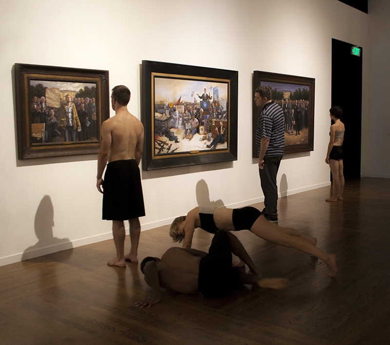 Every year there are more and more art biennials popping up all over the world. Increasingly “performance,” of one kind or another, is as important at these events as painting, sculpture or video art. The Utah Museum of Contemporary Art’s inaugural Utah Biennial: Mondo Utah, is one such effort, and last Friday it played host to Kinetic Spaces, a dance installation performed by Ririe-Woodbury Dance Company.