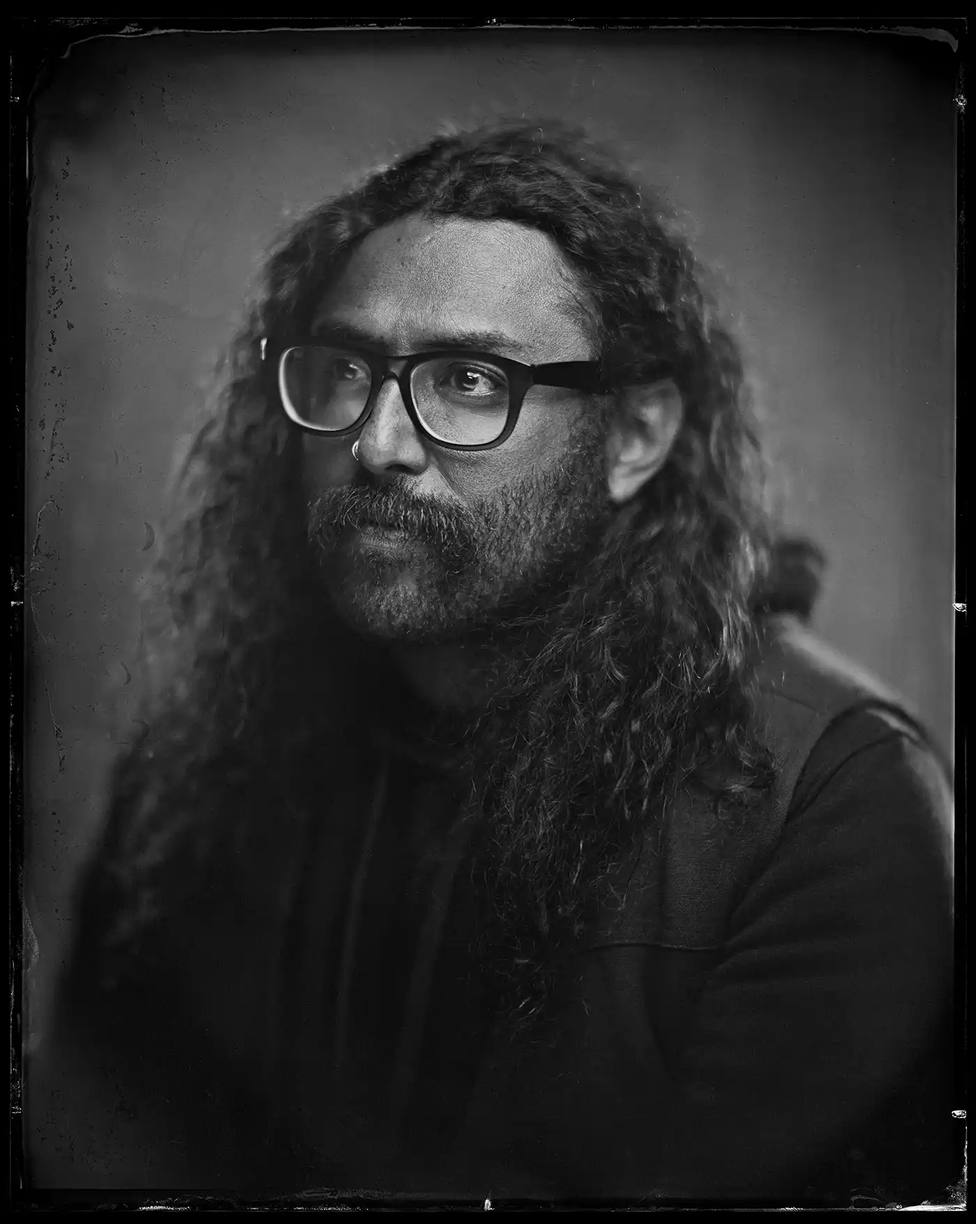 With over 20 years of photography experience, Briggs had been exposed to tintype photography several times in his life. It wasn’t until almost seven years ago when some of his favorite brands of film stopped production that he decided to make his own. Briggs focuses largely on portraiture and uses large-format (8×10), wet plate tintype, a medium invented in the 1850s. Wet plates carry a collodion—a nitrocellulose solution dissolved in ether and alcohol—that becomes light-sensitive when silver nitrate is added.