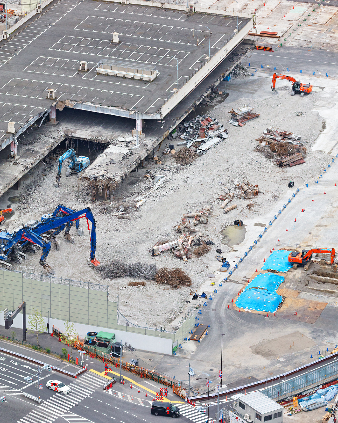 The images in Marker place the guts of progress center stage. Construction sites and unfinished demolition show the aesthetics of structures when they adapt and readapt to their own environment. “Over time, systems stack on top of systems and blur into one another,” says Everett. “I was interested in this cycle of things being added and removed in succession. To organize something is to make it disappear, and I was drawn to the elements that managed to remain.”