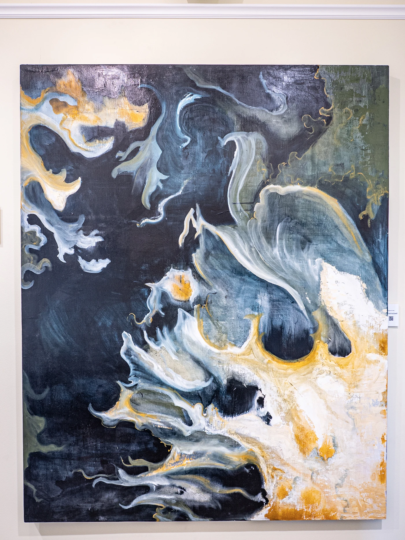 The art ranges from watercolor to photography, mixed media and everything in between. Perhaps the most notable work in the Salt Lake gallery is Winged Dress, a 57.5” x 42.25” oil on panel work by J. Kirk Richards that depicts a rainbow angel’s wings coming off of an empty dress. In contrast to Richards’ abstract work, longtime Encircle artist Colby Sanford uses acrylics to create realistic depictions of humans and the raw emotion that they express in different situations. Other artists such as Megan Ah You and Annie Farley depict the serene and calming beauty of nature while Ascha Lorissa Rowley, the artist behind Spheres of Influenced, use mixed media to create ethereal, semi-abstract pieces rich in symbolism.