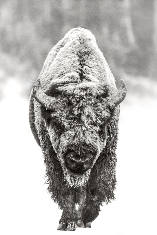 Tapahe had grown and further established his photography business by the start of 2020, with a couple awards and plenty of prestigious art shows under his belt. Then everything came to a screeching halt. With the ensuing turmoil and uncertainty, Tapahe felt hopeless. But one night, a dream came to him with a message of hope, sparking a new direction for his photography. In the dream, Tapahe found himself among the tall grasses of Yellowstone, watching as jingle dress dancers came into the field with the sound of bells and began dancing with the bison. He was filled with a sense of peace and tranquility. When he awoke, his memory of the dream remained. “As Native people, [we believe] if there’s a dream that persists throughout today, it means something,” he says. So he decided to make this dream a reality.