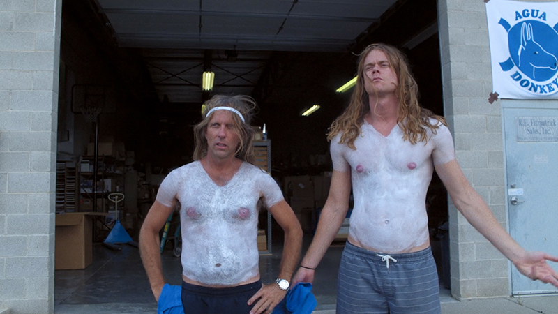 Cunningham: Jer and I have always wanted to be pool boys. So it felt natural writing the script. I also think that it’s interesting how someone can have different versions of themselves. Jer and I are one way when we’re together. We’re another way with Jackie and another way in front of Donnie. The same thing goes for the housewives and our boss, Rod. In life, we’re constantly reflecting on our environment, and our environment is reflecting us. Jer and I wanted to write a script about the idea of love. MP and Jer love Jackie, but when they find out she loves Donnie, it makes sense to MP and Jer because they want to be like Donnie. And at the end of the day, MP and Jer will always have each other. It’s a multilayered love story.