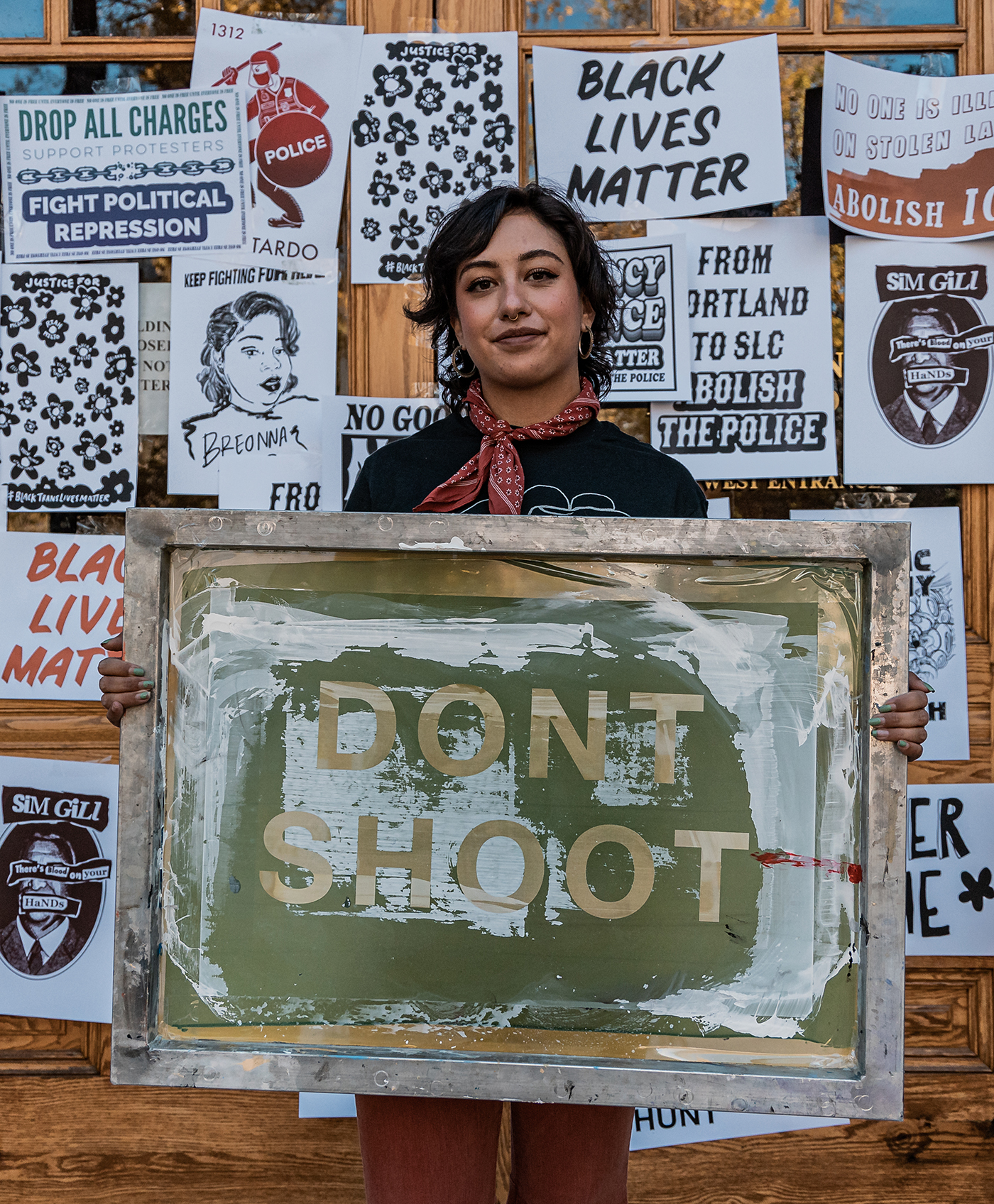 Another leg of this outreach and engagement turns toward the concept of public education. “Local Propagandists have created an avenue [through which] people can grasp what activism is. It really is the thing itself. It gives you something to hold or to wear,” says Jackson of their use of physical items to spread their messages. More than this, the organization has already begun undertaking speaking and educational events at institutions such as Salt Lake Community College about the importance of propaganda, and they hope to continue spreading knowledge about abolition, screen-printing and more in the months and years to come through classes, lectures and workshops.
