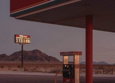SLUG: A common setting in your photos is often rest stops or gas stations in the middle of red rocks and deserts. it reminds me loosely of Edward Ruscha’s 1963 book Twentysix Gasoline Stations, which took him on road trip from Los Angeles to Oklahoma City. The route he took would’ve taken him through the same exact areas you photographed in your book. Was Ruscha’s book an inspiration for you?