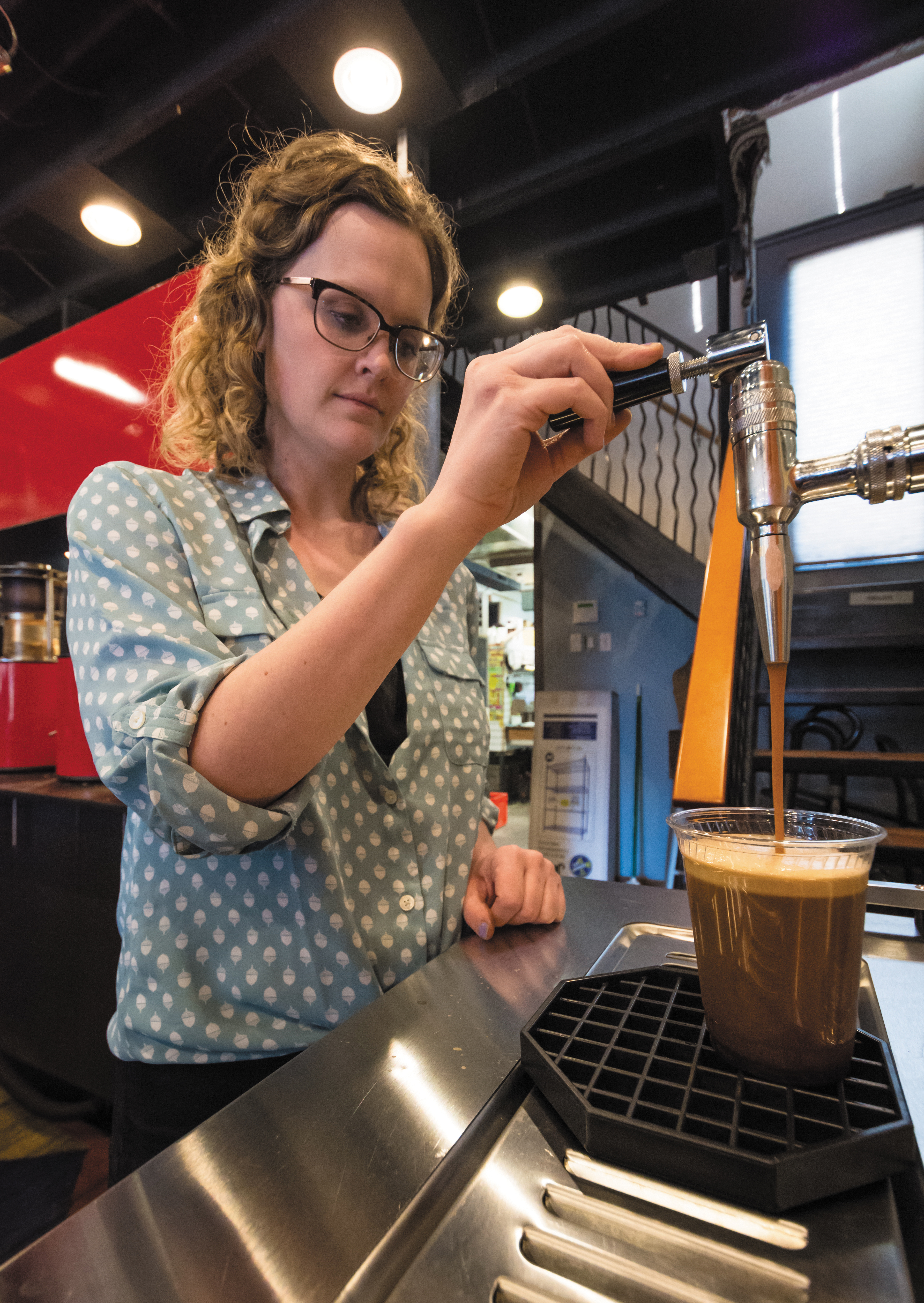 The shop’s environment is also an important aspect of Jack Mormon Coffee, because a coffee shop should suggest the social aspect of coffee. Jack Mormon offers espresso drinks, Clover-brewed coffee, nitro cold brew and more. There, the baristas have to be not only friendly but also to engage the customers and help them find options in their personal coffee while realizing preferences that they might not have even been aware of. If you want to test their knowledge, start with questions about your favorite fruits, nuts and sweets. “We open at 8 and arrive an hour earlier to make sure everything is roasted fresh and perfect for the customers,” says Groesbeck. “I check out other coffee houses to see everything that’s being offered and check the quality of what’s around. I want to make sure we’re staying competitive.”