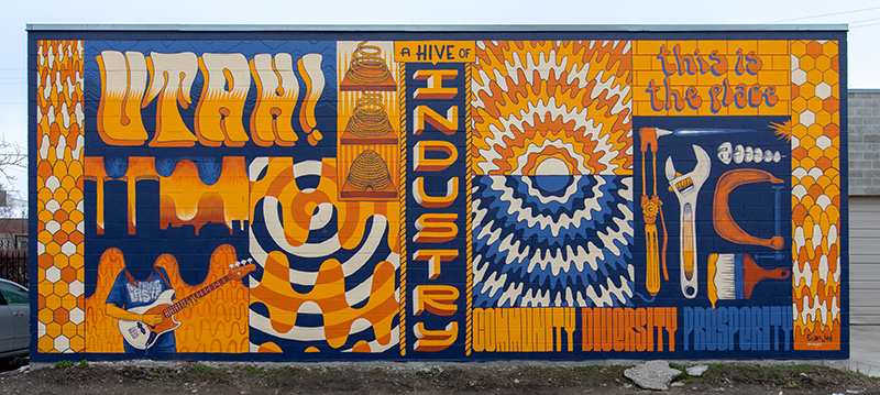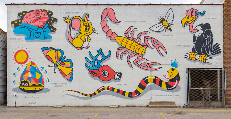 Dyer saw an opportunity to take the initiative on a mural festival during the construction of a “creative district master plan” and with the help of the South Salt Lake Arts Council, the Arts Alliance and the city of South Salt Lake, wheels started turning. “Murals are relatively inexpensive, and I figured, if we opened up the opportunity, that artists would respond really well,” Dyer says. Through that process, they decided that they could safely consider South Salt Lake as a creative-industry zone, as many artists and creatives have moved to the area lately. “Overall, the [Salt Lake County] mayor and the city council were supportive of it.”
