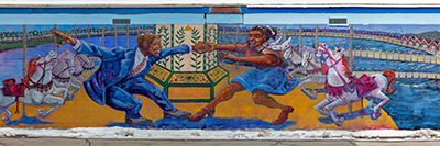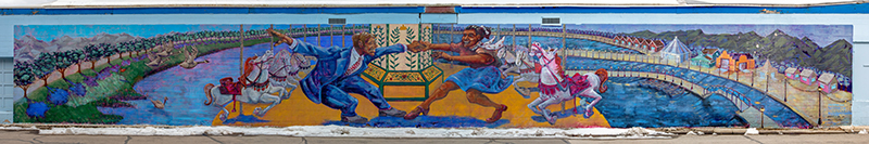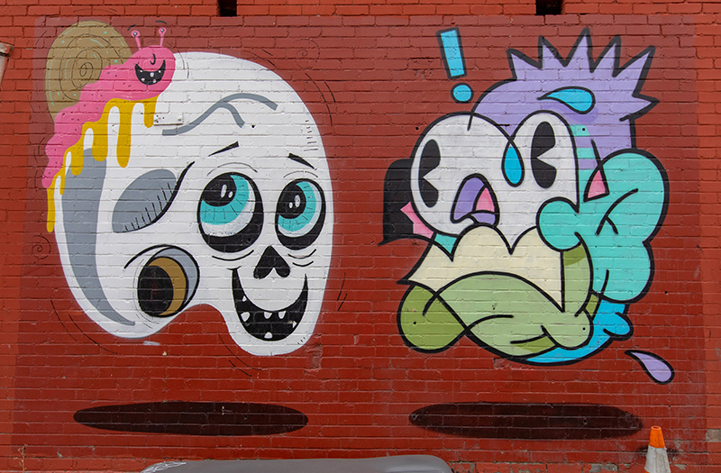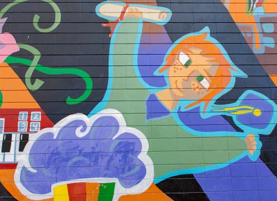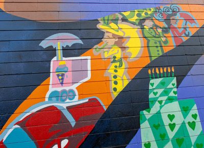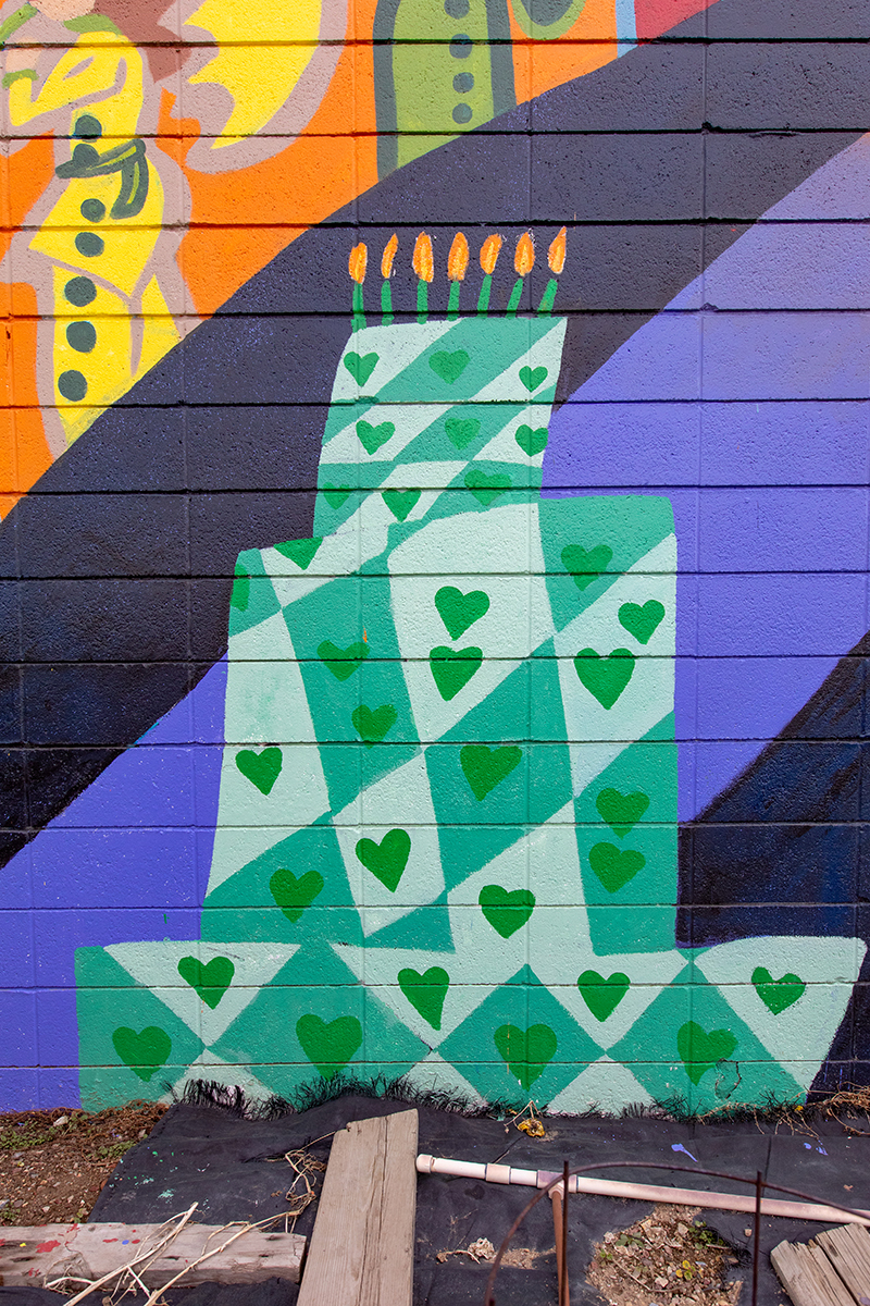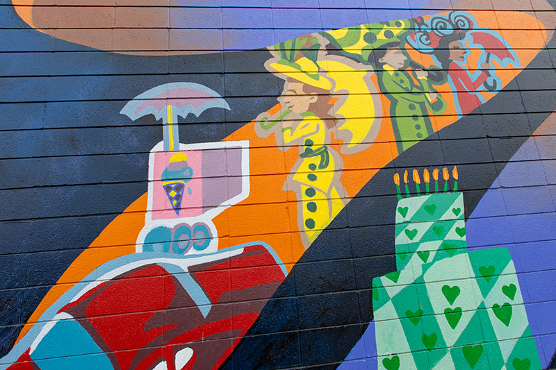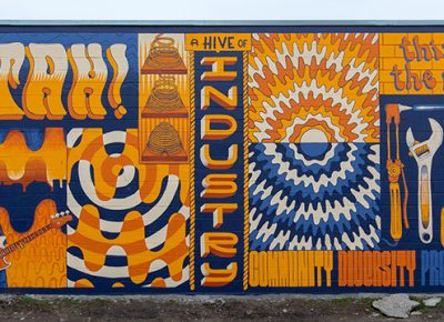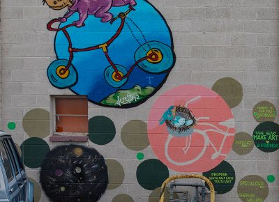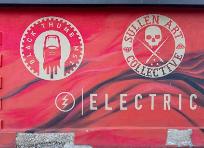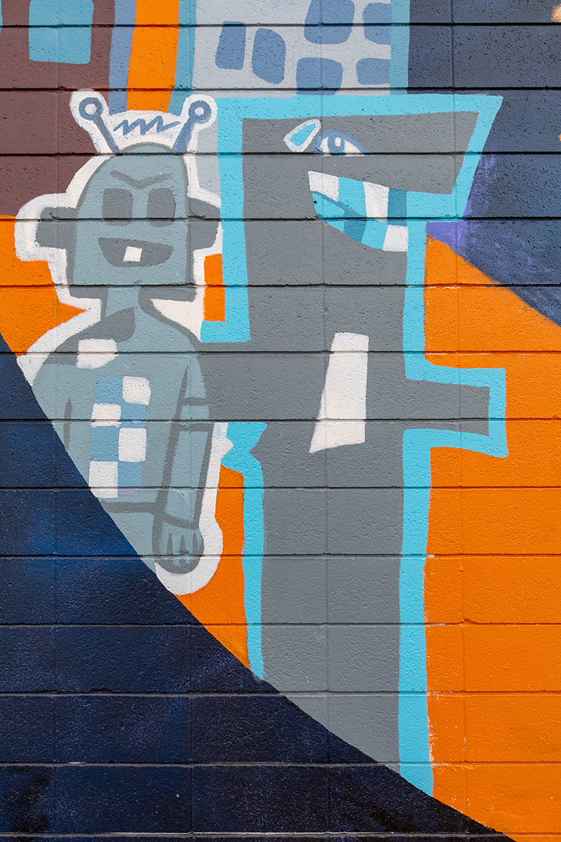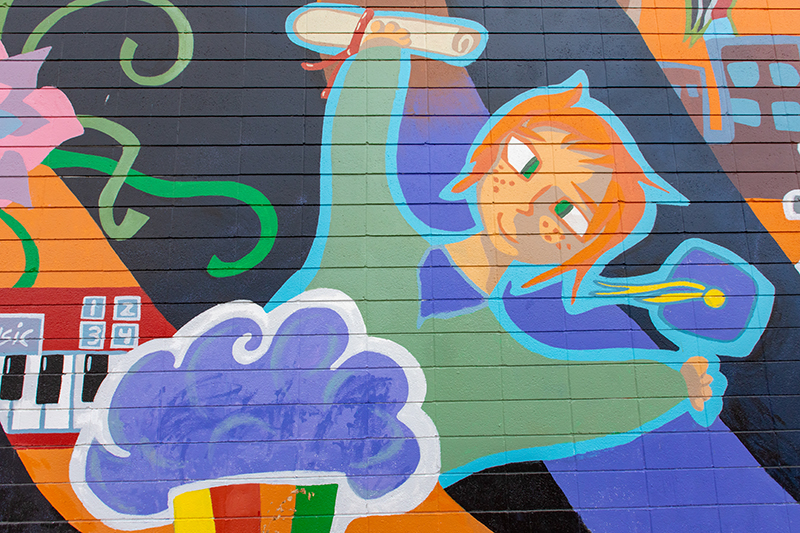 In order for these projects to move idea from idea to execution, Dyer and Nelson had to talk to their respective mayors and city council representatives to back their visions. Working directly with them allows for a smoother, legal process. “They basically get a contract with building owners to say that they’re leasing the side of their walls for this art, and they can’t paint over it,” Dyer says. “I think if the Arts Alliance—alone, without the city—came in and said, ‘We’re painting all the buildings,’ we would have run into a lot more trouble.” In Nelson’s case, the artists had to contact the business owners directly with concepts and get permission from them. She says, “Next time, we really want to go into it with a game plan that’s easy for the city and the community to digest.”