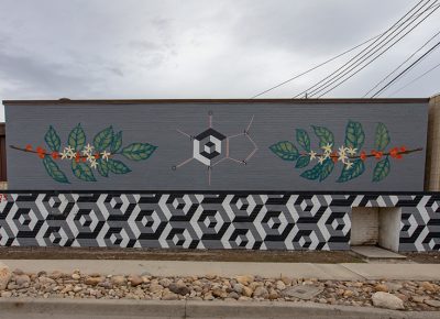 Throughout the Granary District and South Salt Lake, you can see 24 eye-catching murals adorning the buildings in these neighborhoods. They feature artists like Trent Call, Evan Jedd Memmott, Elaina Court, Cara Jean Means and Justin Johnson, among a handful of others. Memmott’s mural, which is one of my favorites, can be spotted on 712 S. Kilby Court, which greets show-goers with a gooey, blue-and-honey-toned piece that represents a dreamy, psychedelic Beehive State. This mural appears on the cover alongside pieces by Chuck Landvatter and Roger Whiting in South Salt Lake and by Joseph Toney in Granary. Another that stands out to me in South Salt Lake is Court’s and Elizabeth Bunker’s eye-catching mural, depicting interesting geometric shapes all in grayscale, with full-colored sprigs of coffee branches, which can be seen on Utah Coffee Roasters’ wall.