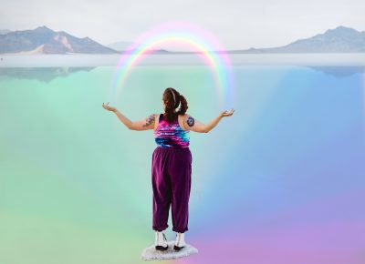 In this way, Mellor’s photography becomes a safe space for others, a portal to a world that embraces beauty of all kinds and isn’t afraid to speak its truth. “I would say my work is body-love focused, and it’s a bit surreal and very imaginative, colorful, bright and creative,” says Mellor. “The theme is to celebrate the skin that you’re in, and I want to make you think when you look at it.”