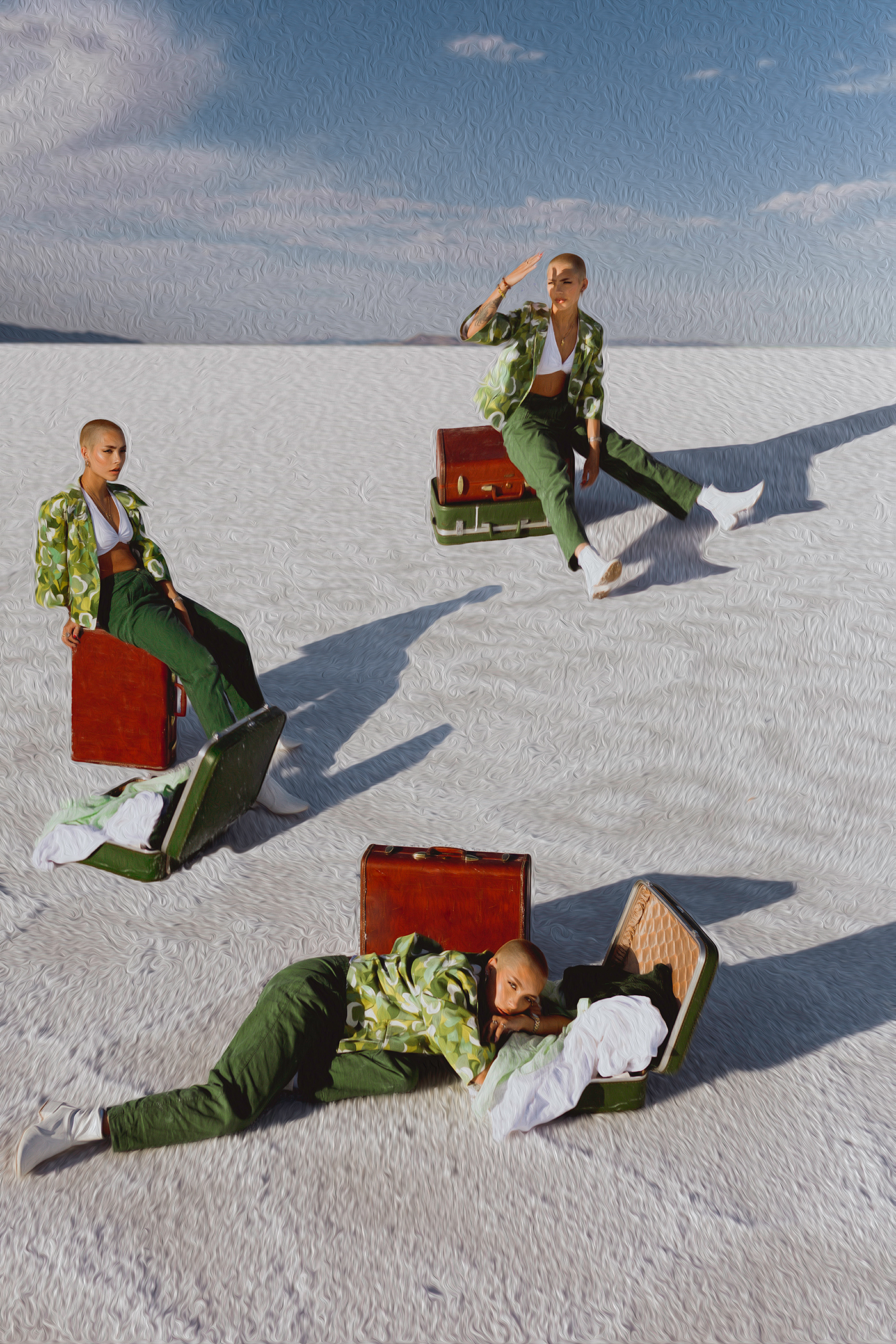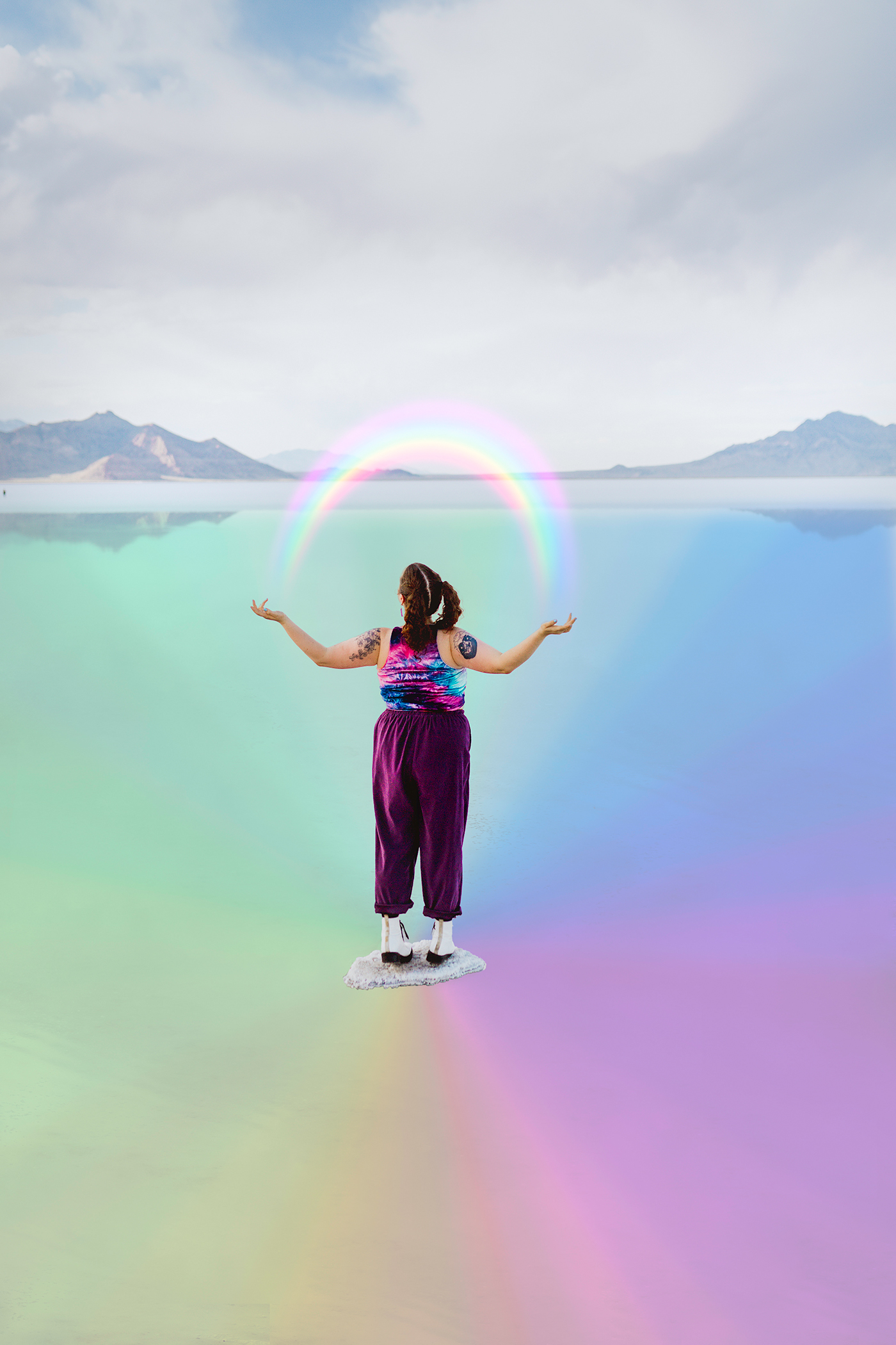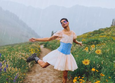 Mellor recalls a time they took photos of someone who had recently come out as nonbinary after a traumatic car accident that snatched their dreamt-up life away. “They told me because of that time in their life, they realized that life was really short and fleeting. So they decided to come out as nonbinary and they were so afraid to live their truth and be who they were. They kind of put on this mirror face of what everyone else wanted them to be,” says Mellor. After coming out to their parents, the subject’s mother said, “You’ll always be my alien baby,” which inspired an alien-inspired shoot on the Salt Flats. “We did this photoshoot with holographic tapers and insane makeup and wardrobe, and it looked like this person was on the moon, and somewhere completely different,” says Mellor. They reiterate that the fashion and editorial aspect of it wasn’t the purpose—the purpose was to take a specific part of the subject’s identity and show it to them, to show the individual their power and confidence in their own skin.