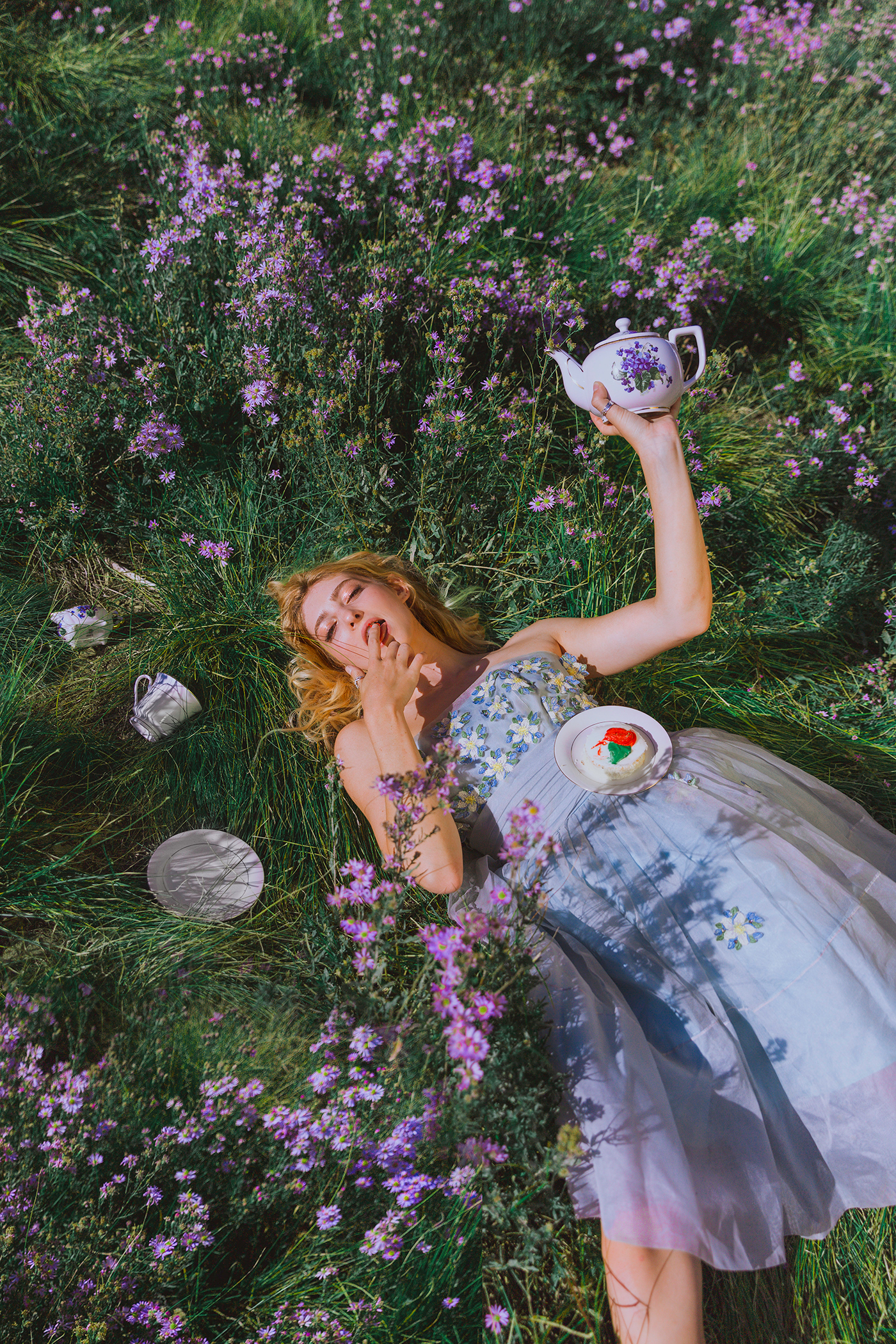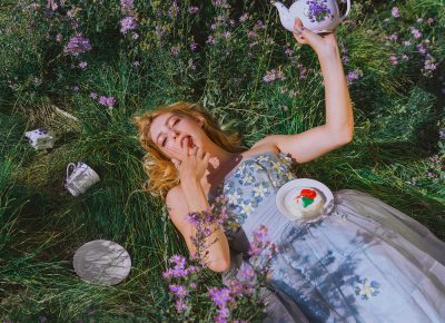 “I’m drawn to people, and photography is a medium—it’s a way to connect with people and share their stories and create,” says Mellor. If Mellor is able to tell a story through their photography then they’ve achieved their goal. A memorable shoot that encapsulates a dark, beautiful tale occurred when Mellor shot photos of The Hunger Games actress Willow Shields. Shields dressed like a doll in a field that progressively becomes more and more annoyed at her solo tea party until she begins smashing everything. “It went from this sweet doll to this destroying princess. It was just so fun, it was so fun to evolve through a photoshoot like that, to tell a story,” says Mellor.