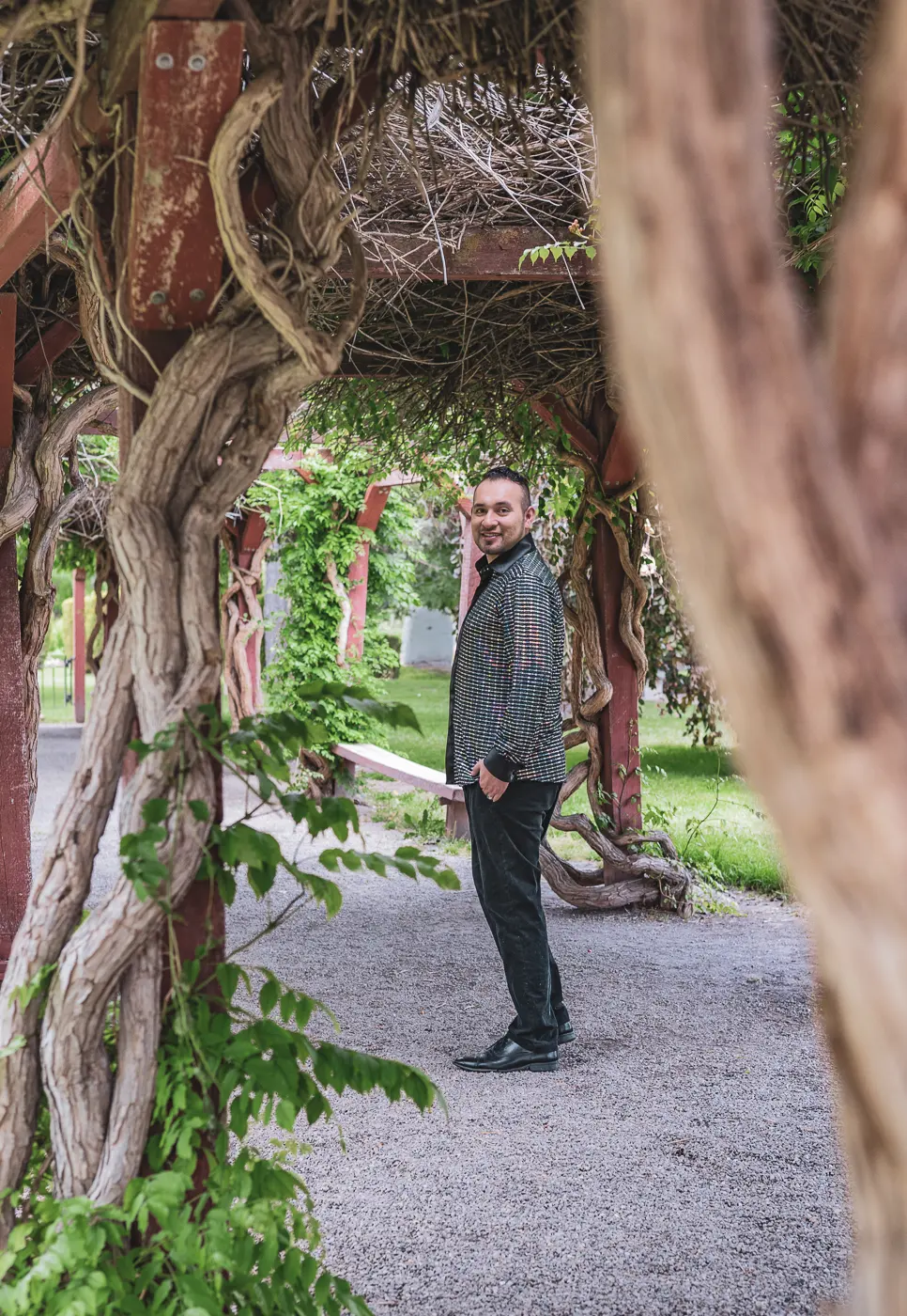 Despite the initial lack of acceptance from his family, Davín slowly worked through it with his parents and found the strength to claim his unique space in the world. “I had to learn how to stand on my own and be like, ‘I am who I am. It’s up to you to decide if you love me [as] the same person that you’ve known for 22 years,’” he says. “‘That’s your decision, not mine.’” Now, Davín speaks sweetly about his parents’ relationship with his husband. “My mom loves my husband, gives him gifts, and every time I talk to my parents on the phone, now they’re like, ‘Tell Jezuz we love him so much and send him our best.’”