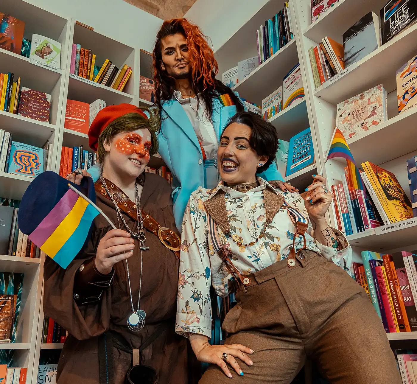 Their shelves are lined with lesbian romance novels, Drag Race coloring books, queer parenting literature, children’s picture books, graphic manga, locally-made zines and so much more. Apart from its textual collection, the shop also sells trinkets, stickers, clothing and jewelry. While it was difficult to refrain from getting swept away in this little shop of wonders, my visit to Under the Umbrella on April 16 was for an event they hold every third Saturday of the month—Drag King Story Hour.