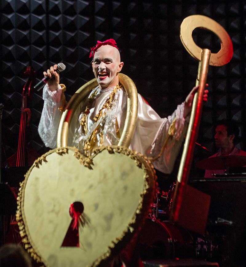 Mac has always been famous for judy’s way of participating with the audience, and that has happened in each performance. What’s interesting about the 24-Decade project is that Mac and judy’s troupe used very little rehearsal time, tending to actually rehearse once there was an audience before them. “We’d get together with the band and spend about three hours for every three hours of music rehearsing,” says Mac. “Then we put it in front of people. The main rehearsal becomes the performance. I would work that way as a solo artist, but it was different to work that way as an ensemble. The great joy of that was that over five years, we were making it with an audience as opposed to feeling like we were hiding it and then presenting what we were making.” Daring to fail a little bit in order to succeed, Mac’s interesting approach to rehearsals has paid off in the long run, adding organic intimacy to each performance. The group also tends to use the audience a lot in their performances, and audience participation has been a longtime favorite of Mac’s shows. “I know people get freaked out by the phrase ‘audience participation,’” says Mac. “What I would say is it’s not the usual audience participation. We’re not trying to force fun on anyone. I’d never try to force anything on anybody. That’s the art that’s in the room—that someone might be too shy or too afraid in the moment—and I want that in the room. It’s the notion of expressing all of who we are, opposed to expressing one thing.” As far as the audience participation in Salt Lake City, Mac says, “You’ll see!”