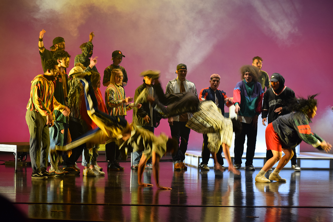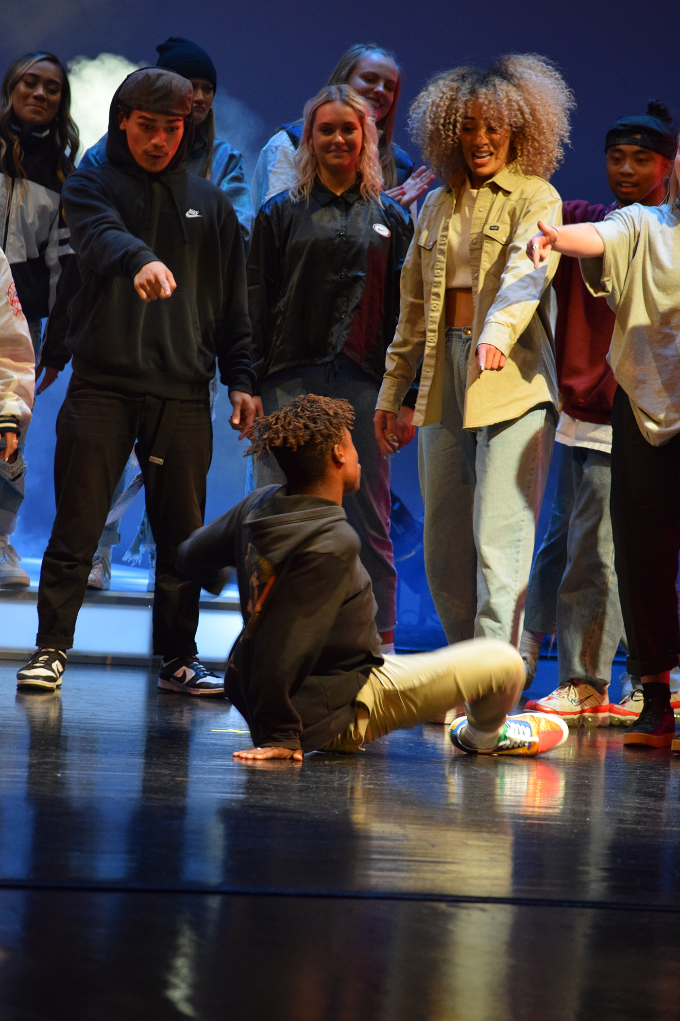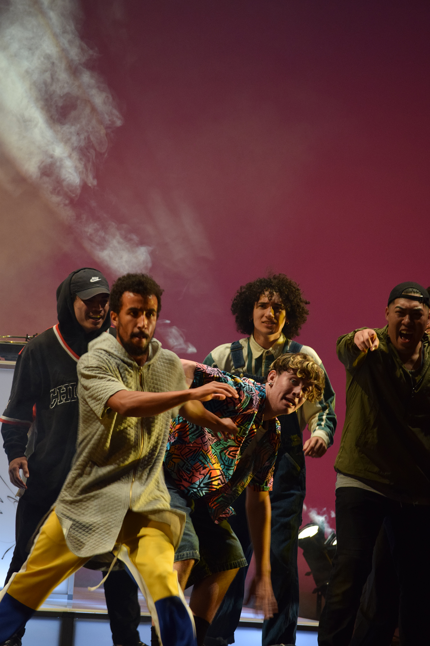 This method of storytelling brings the audience updates on SCR and their journey through self-discovery but it isn’t the only method in They Reminisce. Perhaps the most vital aspect of the performance lies in the dancing and music. There are eight choreographed dance numbers, from “Breakin’” to “Popping” and the finale of SCR going against two other teams, Junction and BKZ, in “The Show.” I was amazed at the fluidity and ability of these dancers. As someone in the audience, I could tell that they were truly in love with the craft. The skill that they displayed made the moves look so easy that I felt that I could start breaking in the parking lot but—fortunately—I didn’t attempt to do so.