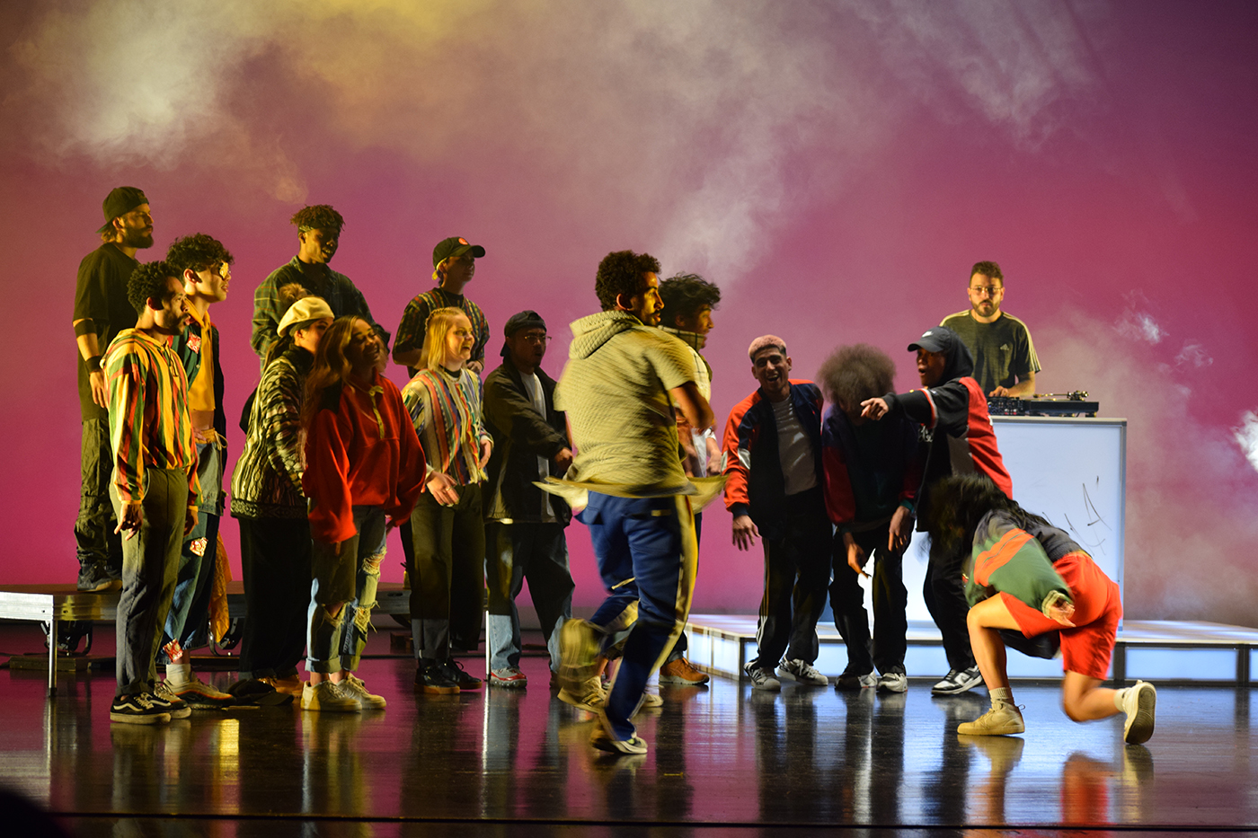Another aspect of hip-hop history that They Reminisce brings to the forefront is the fashion of the ‘80s and ‘90s. The dancers were decked out in Adidas, Fila and Nikes, topping it all off with Kangol-like bucket hats. A characteristic of ‘80s clothing that seeped into hip-hop is fluorescents and outlandish patterns. Some members of the dance crew wore sweatpants with every inch of the fabric covered in alternating patterns and colors. The long silhouettes of the ’90s incorporating oversized white tees and dungarees were present in They Reminisce, as well. While viewing, it becomes obvious to the viewer that no ingredient to the hip-hop historical cocktail was forgotten in the show’s creation.