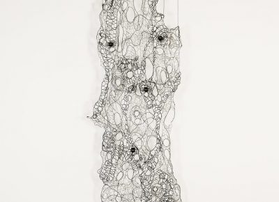 Located at the top of the museum stairs, each work in the new modern/contemporary installation is a masterpiece of the UMFA’s permanent collection. “It’s a pleasure to call attention to these artists,” says Tassie, pointing to the significance of pushing for increased representation in not only a museum’s traveling or temporary exhibitions, but also its permanent acquisitions. She notes the power behind Judith Whitney Godwin’s gestural brushwork and Signe Stuart’s experimentation with material and idea through sewn canvas and paint. Made from tire, Chakaia Booker’s striking Discarded Memories sculpture dynamically twists and jags, referencing both human skin and throwaway culture. Julianne Swartz’s intricate Lace Skin Tear lends an aural dimension to the installation: A layered, four-channel soundtrack eerily weaves through the gallery with tender words and sounds, spoken in several languages—foreign to some, familiar to others.