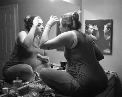 Grandfield channeled his anger into his photos, creating a series documenting each stage of Caitlin’s pregnancy. During Caitlin’s third trimester, Grandfield snapped a photo of her sitting at the sink, exhausted, doing her makeup before work. “She was already having a hard time with the pregnancy,” he says. “She had gestational hypertension, but she was getting ready to go to work because she was the only one in her position and they wouldn’t hire anybody else to help her out.”