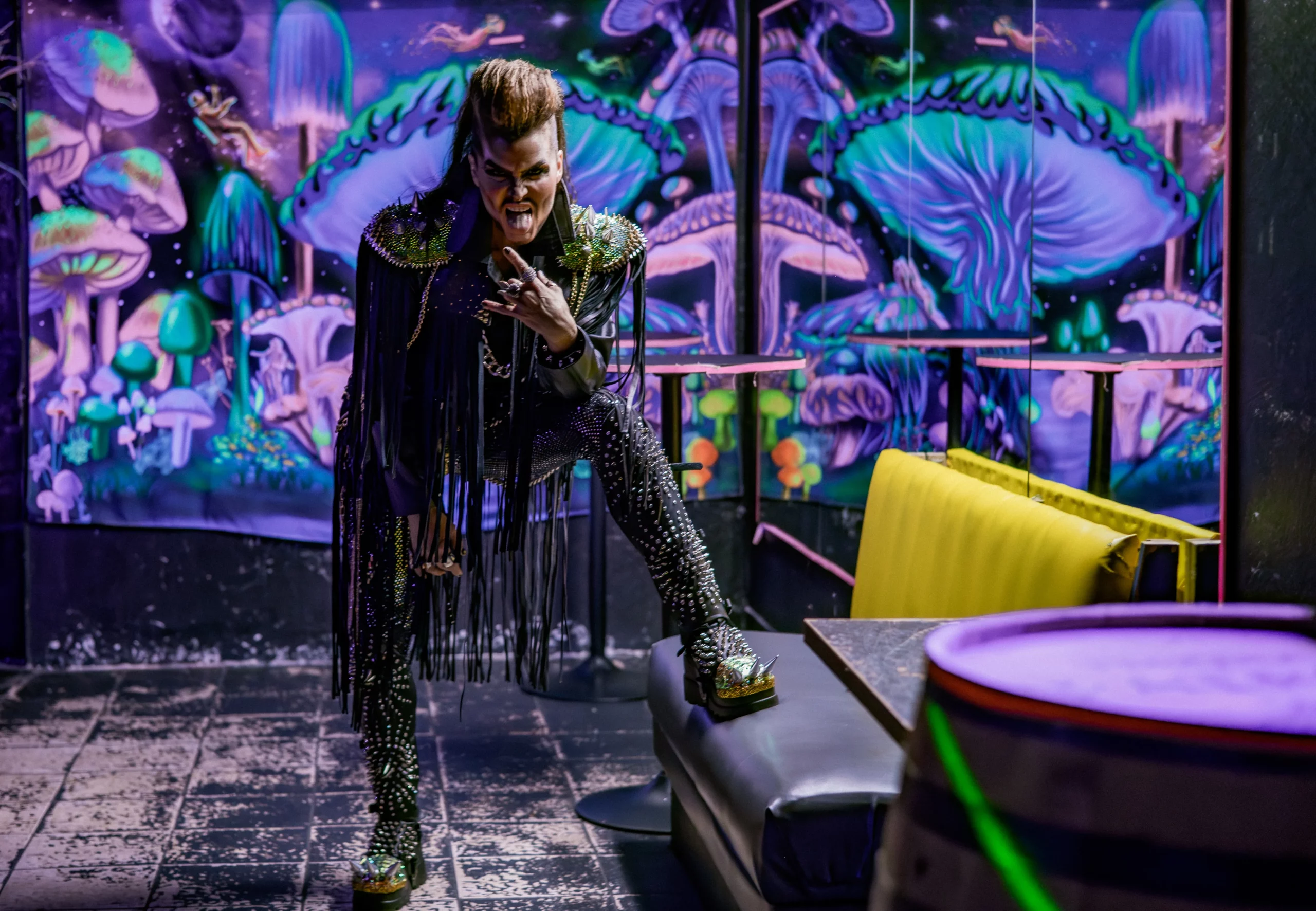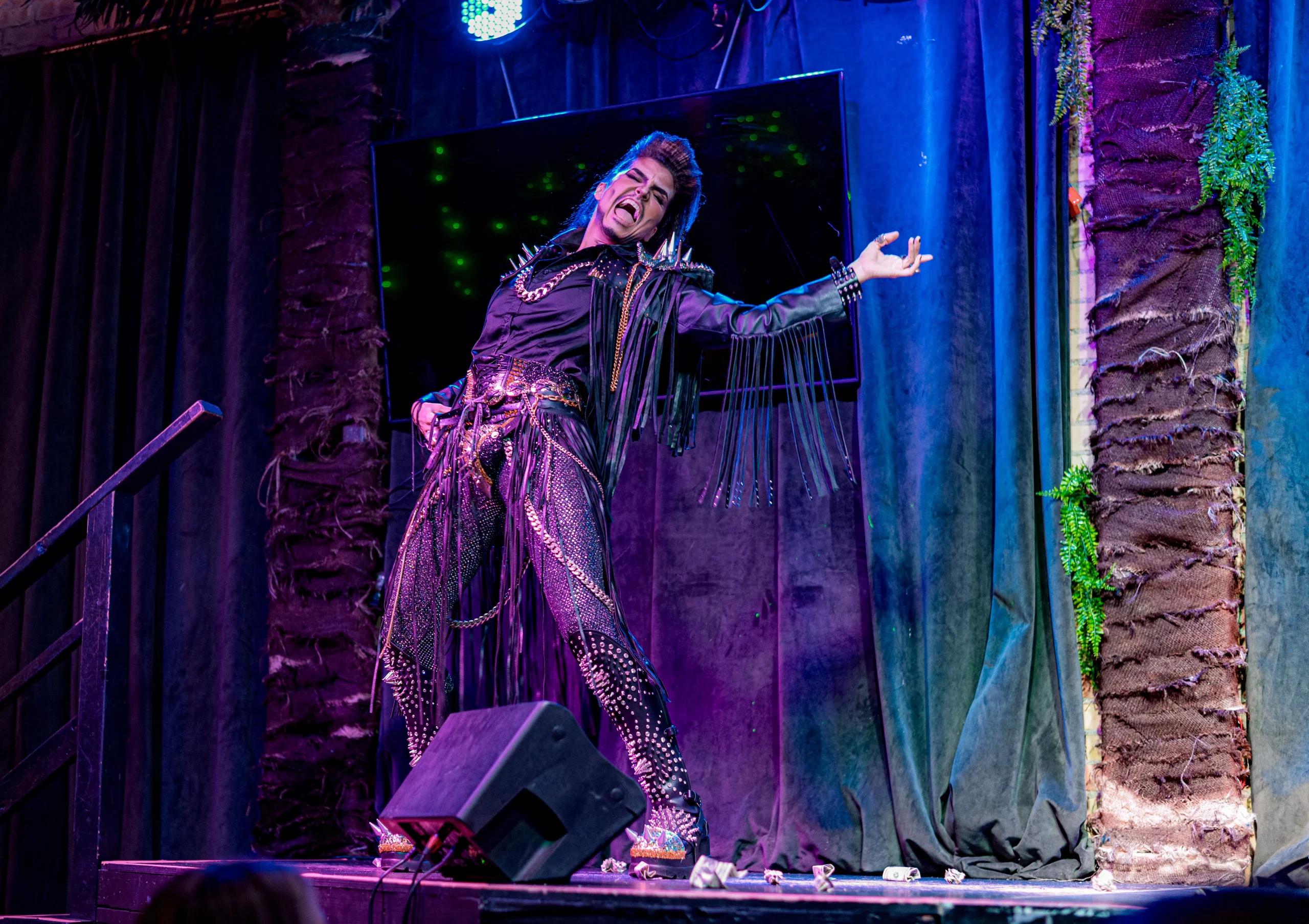 There’s no easy way to purchase a drag king costume, which means Edgewood creates his outfits entirely from scratch. This allows him to be as exaggerated or eccentric as he wishes when incorporating the styles of classic rockers that Gunderson grew up listening to, artists like Ozzy Osbourne and Alice Cooper