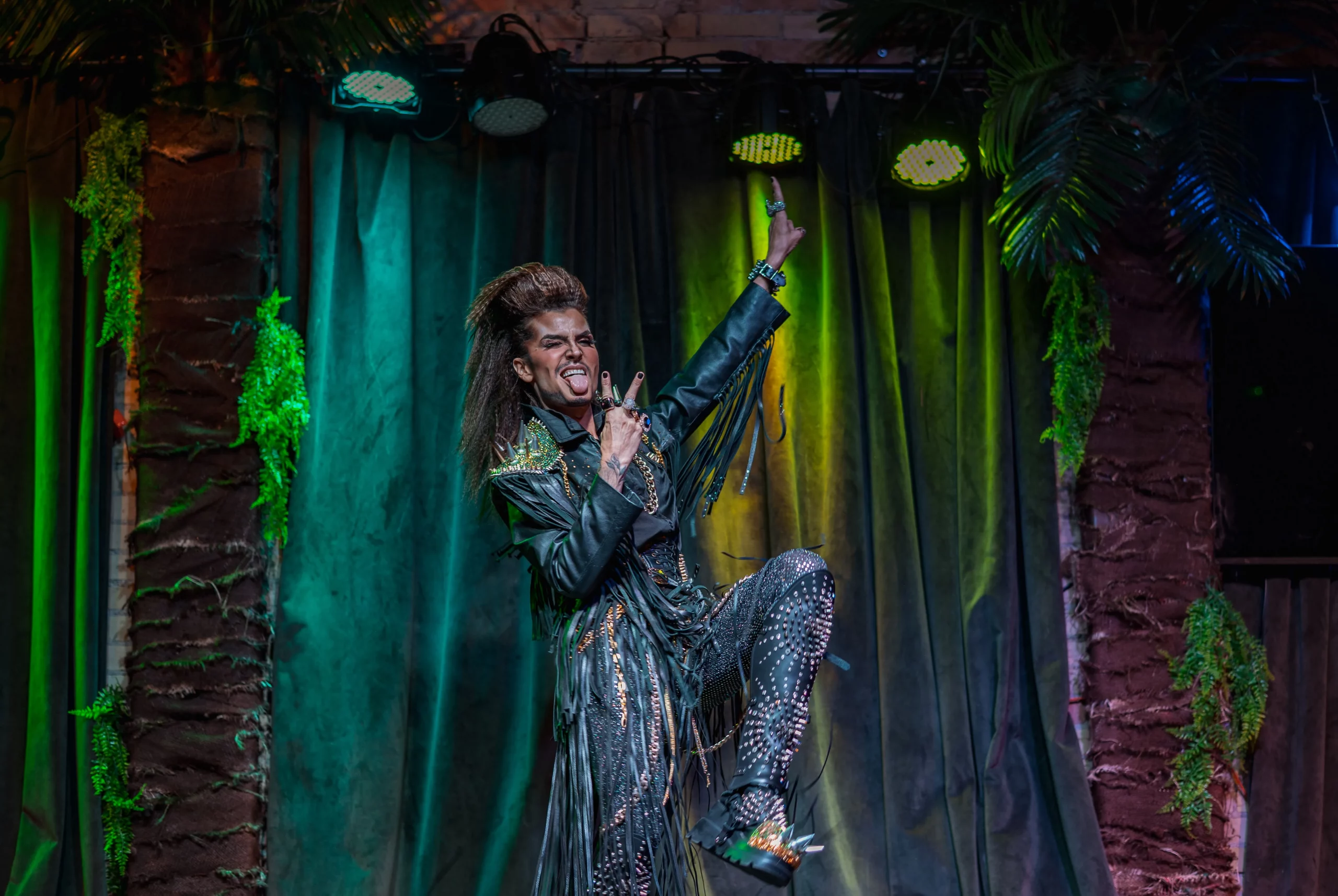 A sexy rock ‘n’ roller is how Edgewood describes himself. With his heart and soul rooted in classic rock music from the ‘70s, ‘80s, and ‘90s, he has drawn inspiration from the artists of that era to create his unique style. Edgewood compares himself to a flashier Adam Lambert, who is known for giving past rock ‘n’ roll styles a modern-day flair. “Fashion on the runway is always exaggerated compared to what people wear on the street. I like to think of drag like being on the runway,” Gunderson says.