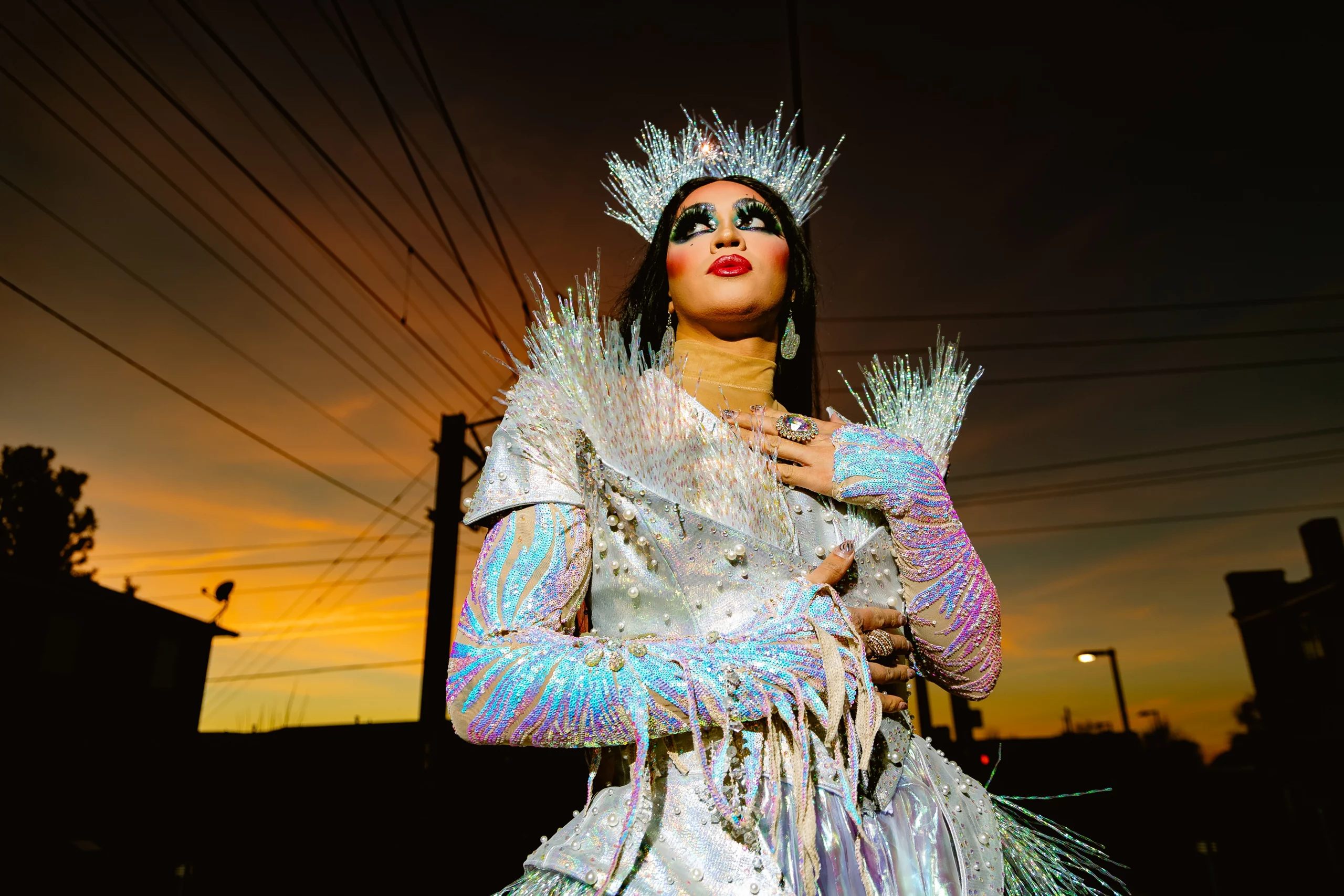 Whether she’s performing an emotional ballad, poking fun at societal norms or dazzling audiences with nostalgic flair, Lilia Maughn is a testament to the bold and beautiful spirit of drag. In her words, “You have to just roll with the punches. It doesn’t matter if your heel just broke off or if you just stepped on your outfit and ripped half of it off. What are you doing with it?” Keep up with Lilia Maughn’s upcoming performances by following her on Instagram at @sheliliamaughn. And check out the talented designer of Lilia’s outfit and member of the Galaxxy Band, M’Lady Wood at @mladywood