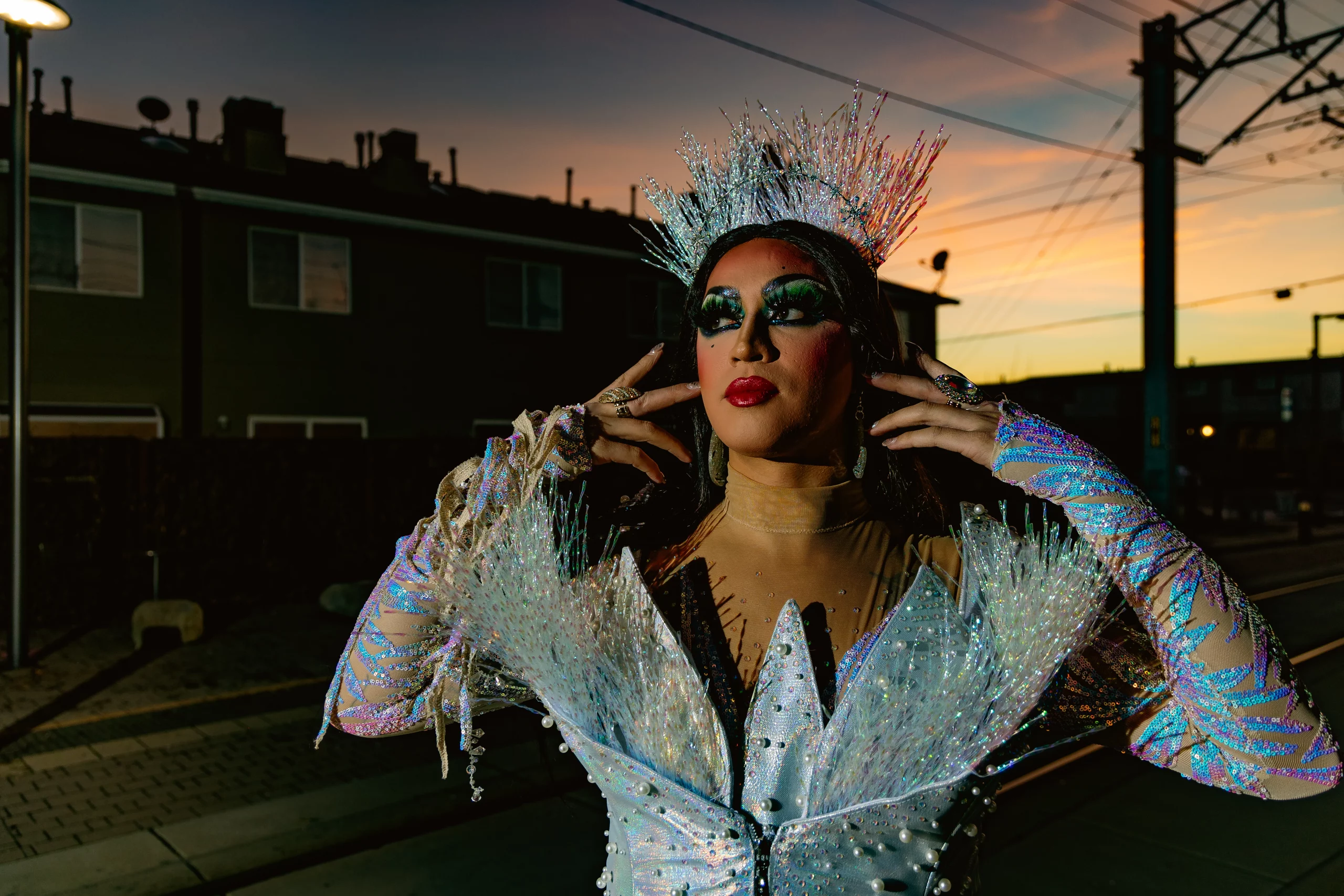Kelly’s foray into drag wasn’t immediate. Having spent their early years immersed in music and indoor percussion, their initial experiences with drag came at a time when it was far from mainstream. “There were only a few performers in Salt Lake City,” Kelly recalls. “I was more into music and playing music, and I was getting too old to compete in indoor percussion. I needed something else to do to perform, and drag happened to be that thing.”