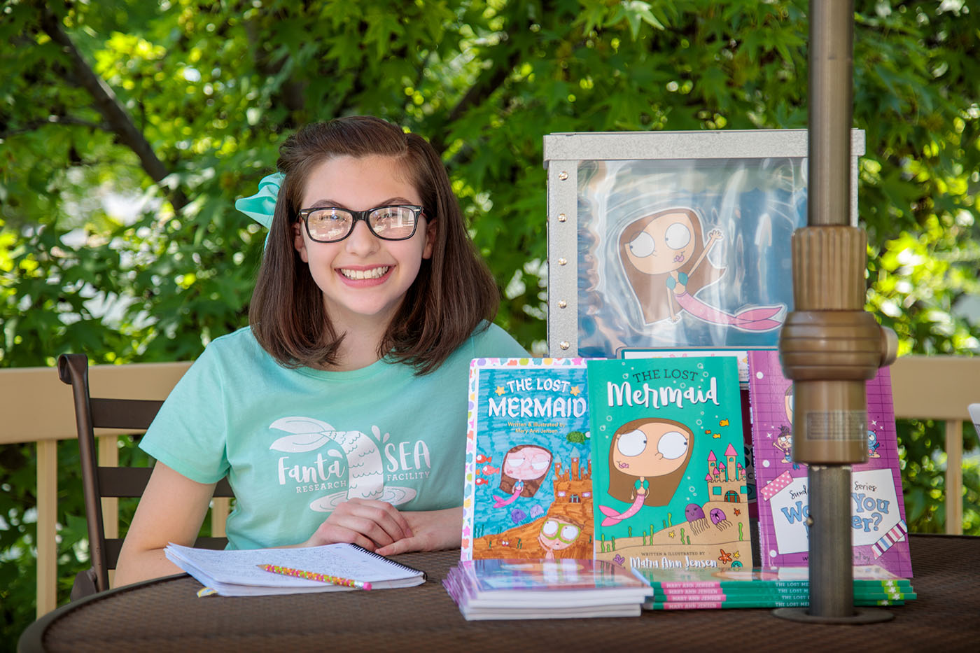 During this year’s Craft Lake City Virtual DIY Festival, Jensen is offering three books for sale. The first, entitled The Lost Mermaid, is a 63-page paperback written and illustrated by Jensen. The first copies of the book were printed at Jensen’s home so that she could give them away to friends as gifts. After a great response from her friends, and a suggestion from her grandmother that the book should be published, The Lost Mermaid became Jensen’s first published work, just in time for her 12th birthday.
