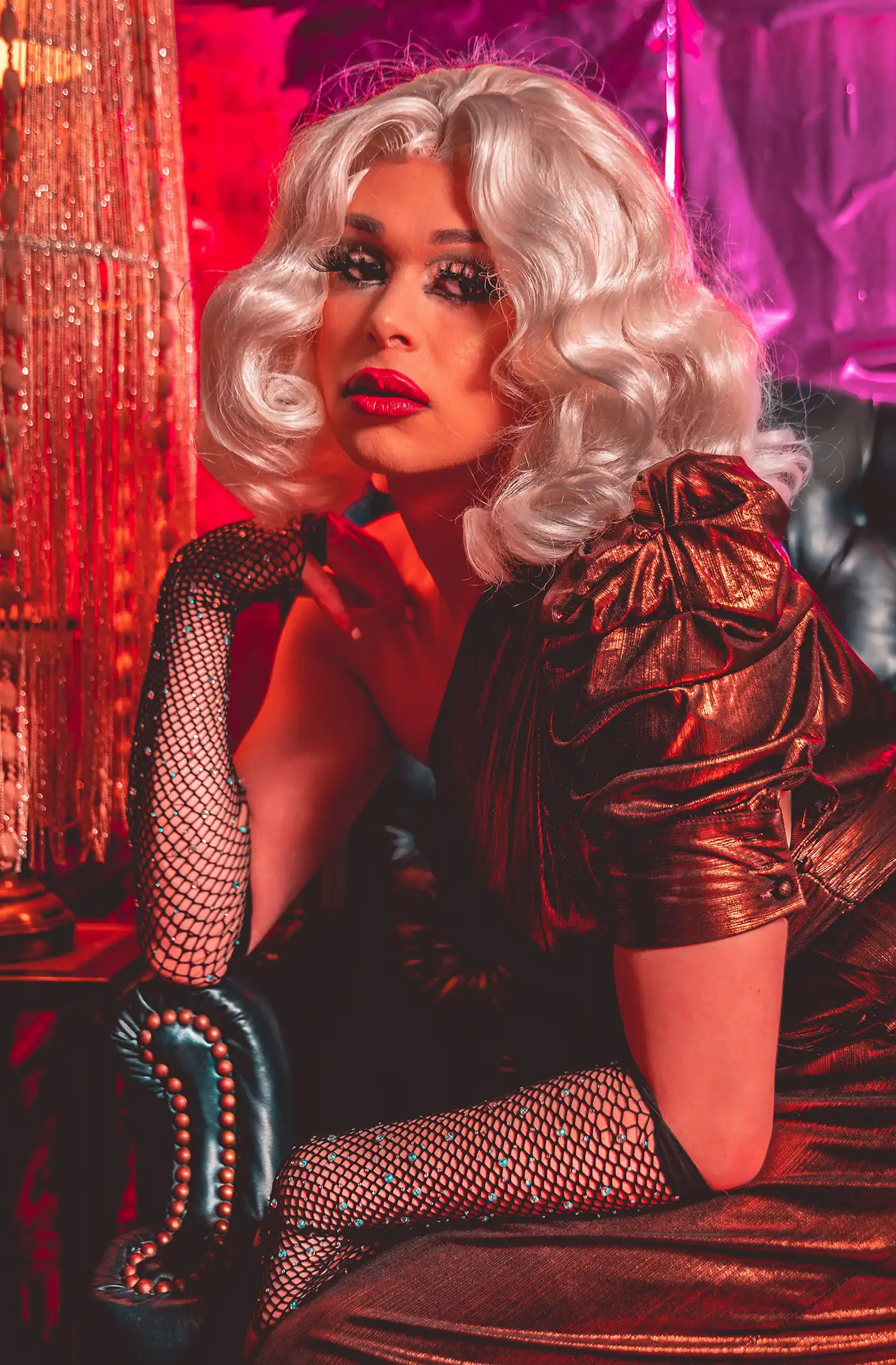 With a background studying musical theatre at the University of Utah, Hoe Shi Minh’s performances often feature backup dancers and extravagant dance routines. “I love dance, and I love doing choreography. I just like to put on a big performance,” she says. When performing by herself, Hoe Shi Minh’s performances range from live singing to making her own mixes and creating numbers with homages to people such as Tiffany Pollard, Gemma Collins and Nicki Minaj.