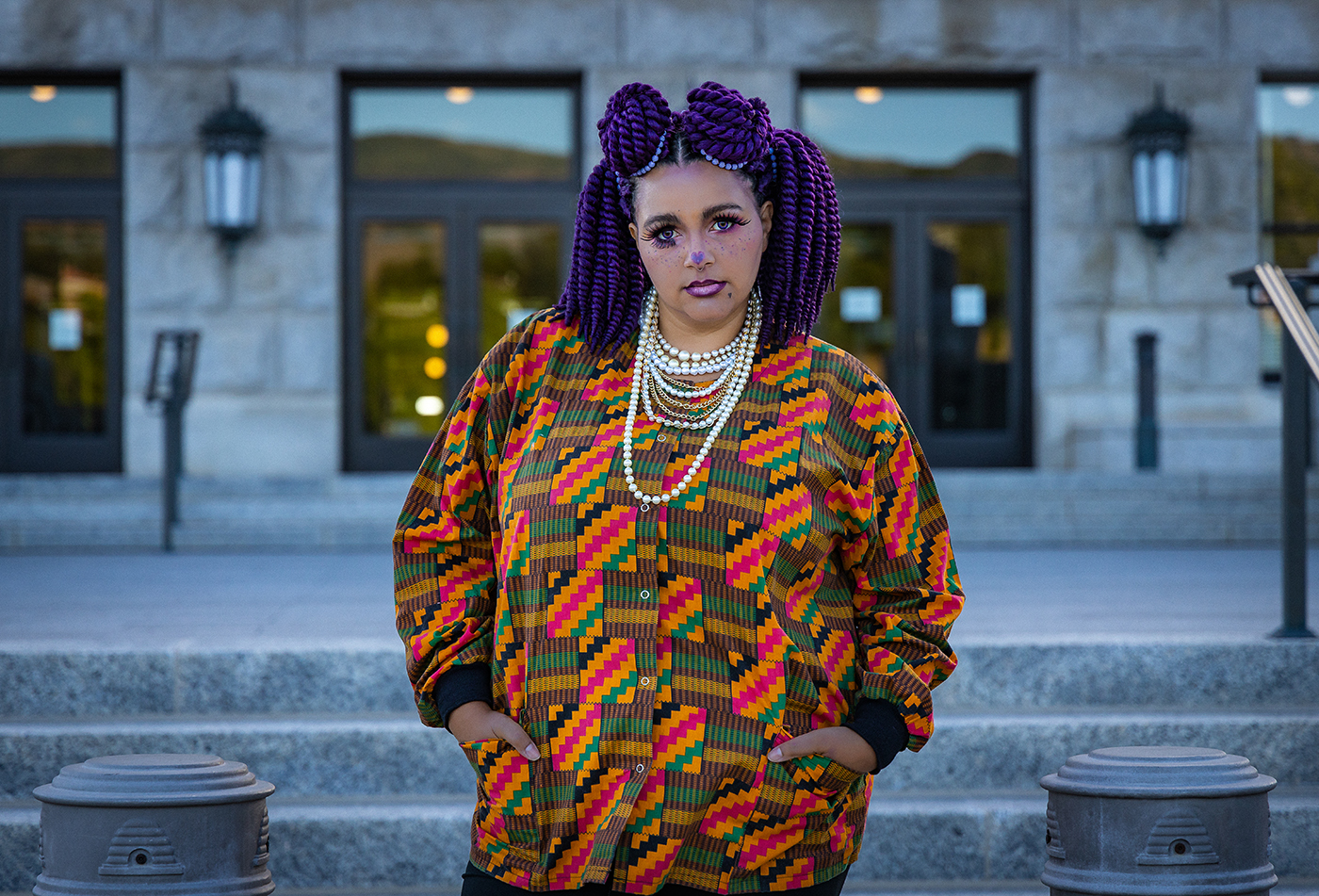 Apart from delivering one-of-a-kind performances, Varas is always finding ways to uplift and interact with Salt Lake’s queer community. The day of Luna’s photoshoot for this “Bold & Beautiful” feature was also International Transgender Day of Remembrance, and Varas was joined by their boyfriend Kenzie, Sammee St. James and SLUG photographer Kelly Williams in honoring each life lost this year. The group took part in a memorial organized by Dallas Rivers of Project Rainbow, an organization working to increase LGBTQ+ visibility in Utah by leasing pride flags across the state. By placing candles at the base of trans flags representing each person whose life was lost or taken, the four were able to take part in a moving and important ceremony—one whose commemoration of tragedies within trans communities deserves more attention in society, particularly through media response. Learn more about Project Rainbow and see how you can get involved at projectrainbowutah.org.