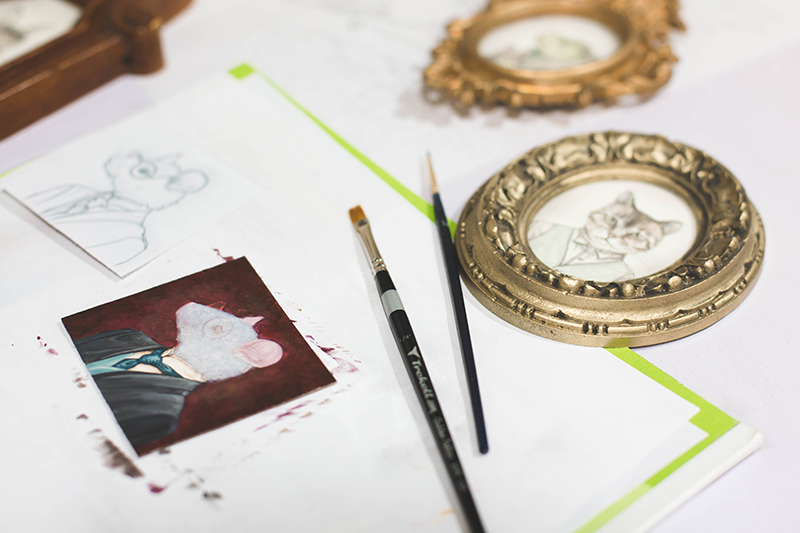 Although already a member with the Society of Children’s Book Writers and Illustrators (SCBWI), she is still seeking agents to represent her work, but has already thrown a few book ideas out there to start working on. Not only does Jean hope to illustrate stories, but she wants to write for the stories that go with her images as well. Her first vision is to launch a series of animal portraits in a series called the Gentlemanly Rabbits, accompanied with stories of their various roles in the fictional town they live in together, bound in hardcover cloth. When going through personality traits for some of the characters, Jean says, “I’m attached to one because he likes butterscotch candies, which I find charming. And another: I appreciate his insisting on going into the fish business simply because he loves fish, despite the entire town happening to be made up of vegetarians.” The portraits will be available for sale as originals at the Craft Lake City DIY Fest, and Jean hopes to raise funds through a Kickstarter in the near future for book assembly and production. You can keep up to date with sketches and images of the project, Jean says, by following her Instagram account, @candacejean.