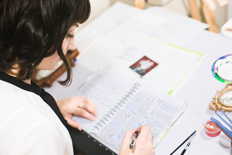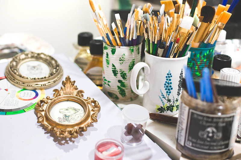 Jean has been drawing since childhood, but she hasn’t had any collegiate training to put on a resume. Not that she needs it—she has a degree in graphic design and demonstrates an acute attention to detail, which gives the impression that this is her career. I was surprised to learn that she works on these projects in her spare time. Having a studio in her home helps, as she can work in it whenever she can find a spare moment, whether it be a few minutes or a few hours. There are two sides of the coin to home studios, though—“I get interrupted because I’m a mom, so that pulls me from my space,” she says. “That’s the hard part: taking myself away from home, because home takes priority, too.” Between juggling a full-time job and raising a kid, she treats her craft as a hobby, for now, with plans to one day focus on creating children’s stories.