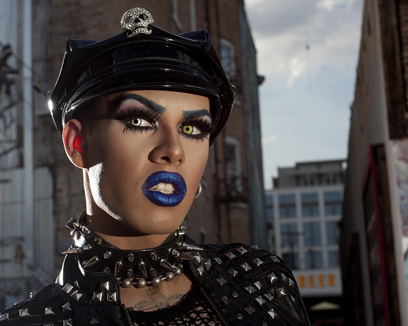 Tony’s approach to gender performance has always been playful. “I definitely feel like drag is a medium for different expressions, especially feelings,” he says. Tony’s upbringing led him to delve into the alternative “scene” subculture and punk and goth aesthetics, where he became enamored with spikes, studs and tattoos, including ones that his supportive mom, a tattoo artist, gave him. Through the scene, he also embraced an androgynous attitude toward gender. “I would identify as genderqueer for sure,” he says. “I love playing with gender and the shock value that it gives me.”