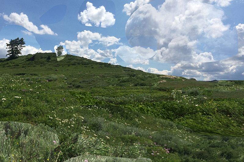 Christensen: I chose to make this series by digitally collaging multiple photographs to create a single landscape image. Images in this series are meant to reference postcards and are 4” x 6”. I’m interested in how the images, at a glance, may seem like an ordinary landscape but soon fall apart as you look closer. I also like the idea of these photos as a “Wish you were here.”