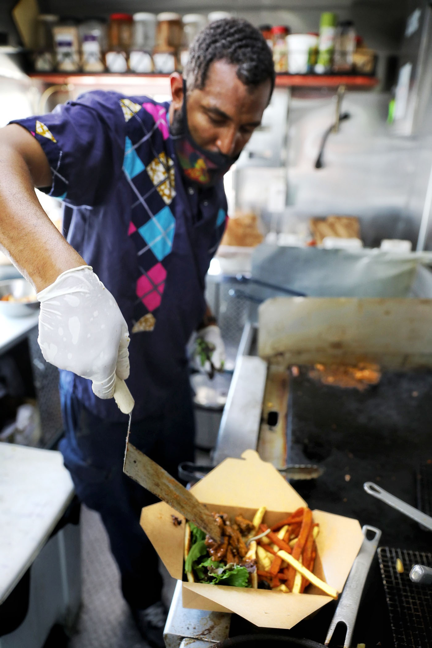 Soud, the Chef/Owner of Kafé Mamai catering and food truck, was led down this culinary path by a love of innovating in the kitchen. “I give credit to [the] women in my family, especially my grandma, for the inspiration,” Soud says, “thinking outside the box by trying to find ways and new methods of cooking.” In fact, “Mamai,” the business’ namesake, is a tribute to his grandmother’s nickname, meaning “mom water” in Swahili.