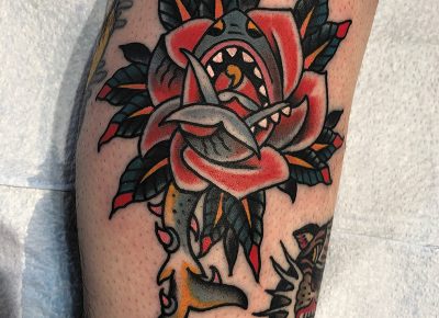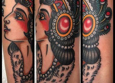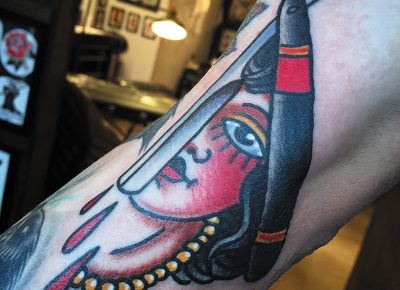 What styles of tattooing you favor/specialize in: Although I can do other styles, I 100-percent prefer to do single-point traditional tattoos! Black outlines, heavy black shading and solid color. The only tattoos I will turn away for me personally are realistic portraits. There are people in town that would do a far better job and I feel comfortable enough in my work to recognize them and appreciate that! I do tattoos because I love tattooing, not just to make money.
