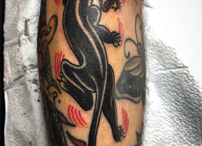 Favorite custom piece you’ve done: I don’t know if I have a specific favorite because I try to take something away from every tattoo that I do, and apply what I’ve learned to the next one. The people and their experiences are what make some tattoos more memorable than others! I’ve recently been doing more coverups of old white power/racist tattoos, and since I abhor racism, I really enjoy covering tattoos that people got when they were in a dark place and have since emerged for the better and have taken the steps to erase that part of their history!