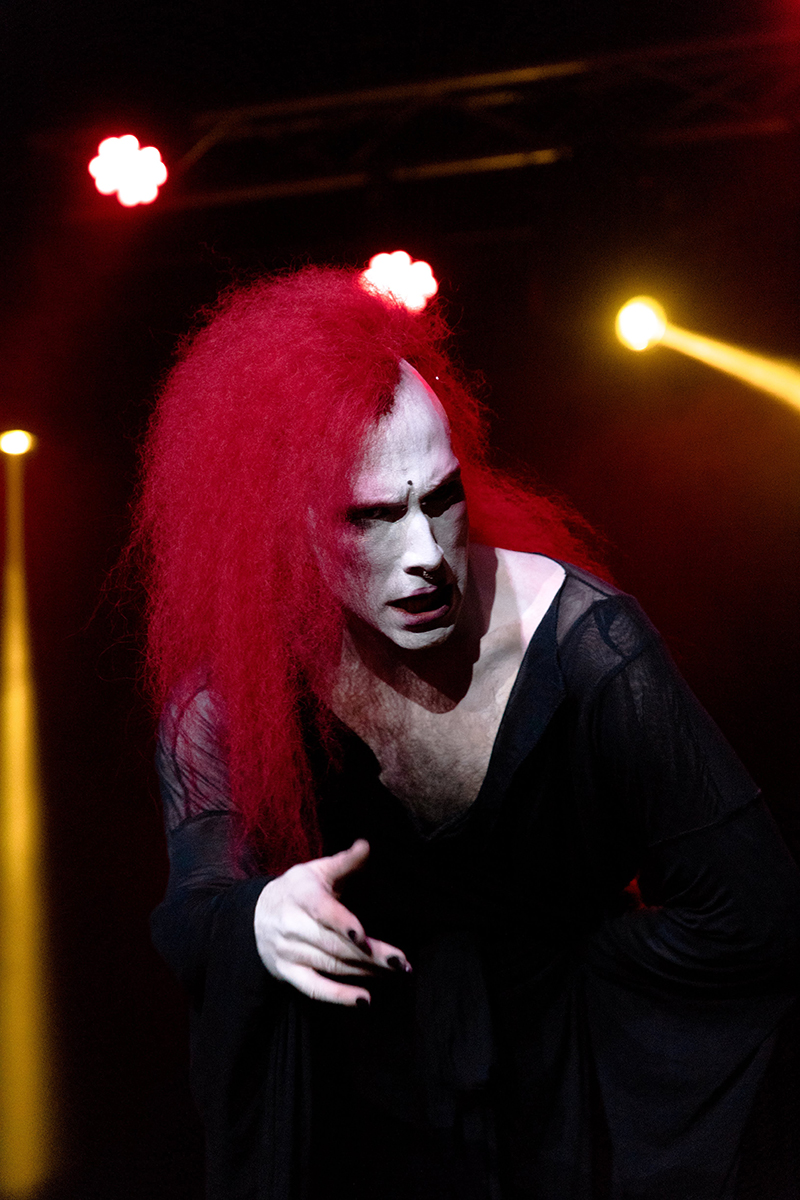 The evening was hosted by Ursula Major, who is an L.A.-based drag queen known for their terrifying presence in Season 1 of The Boulet Brothers’ DRAGULA. Ursula is a fierce queen whose intense looks are often accompanied by a gross sense of humor and a sharp wit—making them a perfect host for such an event. Although their time on DRAGULA came to an end way too fucking soon (eliminated in episode 2, the nerve), they’ve been working hard to further their drag career and it shows. The looks and performances Urusula curated that evening were fabulous. Be sure to follow them on IG @ifvckedursulamajor for some seriously killer cartoon-y faces on a sick BDSM bod.