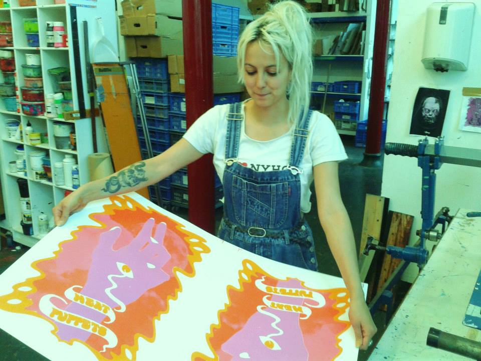 When prodded about her dream client, Lea doesn’t have anyone specific in mind—L7 was pretty high up there for her—but, she admits a little sheepishly, she’d like to do a poster for Aerosmith, “Though that would just be a fangirl thing,” she says. “It was always second nature to be doing something creative,” says Lea. “I’ve always been drawing and illustrating, but screenprinting has really been what I feel most comfortable doing, what I can most express myself through.” She recalls growing up with punk rock parents and having zines and graphic novels all throughout the house: “My dad was always in a band or drawing a comic, and my grandma—well, she wasn’t punk rock, but she was constantly getting me to make things,” says Lea.