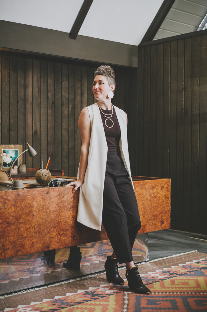 Andrea Beecher, along with Brian Garrett and Jason Frederick make up M3LD, a design firm and manufacturer of sculptural home decor. Beecher is a living embodiment of the aesthetic of M3LD’s products, usually looking chic in mid-century modern–inspired style. She also helped start the design division at cityhomeCollective, a purveyor of some of Salt Lake City’s most beautiful living spaces.