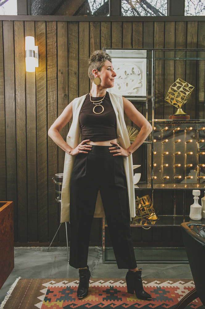 “Whenever something is happening in home fashion, usually something similar is happening in personal fashion, which I really think is awesome,” says Beecher. “For me as a designer, I can design a space and make it beautiful—and I love that—but I think an expression of my art is also what I look like every day. So my personal expression is really important to me. I have a lot of fun accessorizing and getting dressed every day.” Photo: Tyson Call @clancycoop