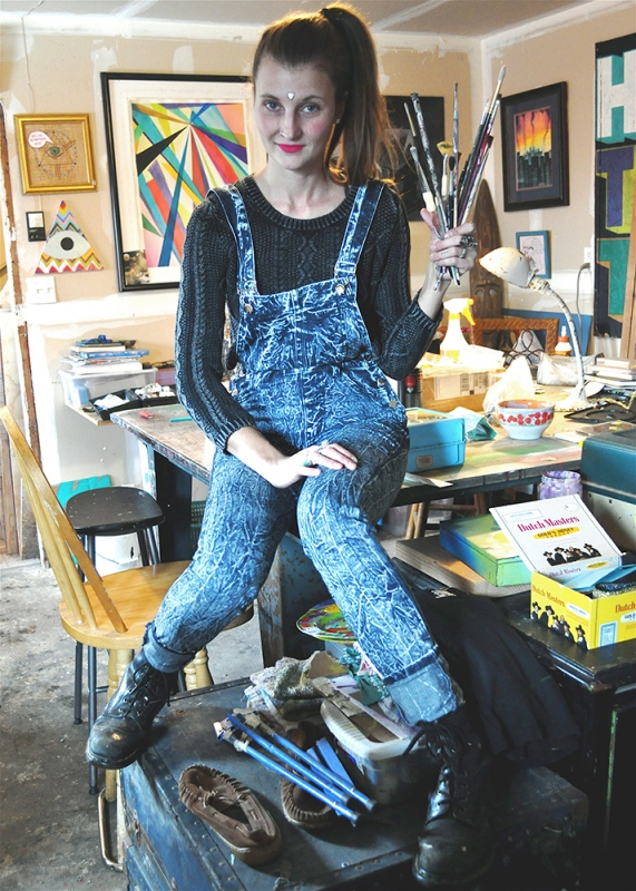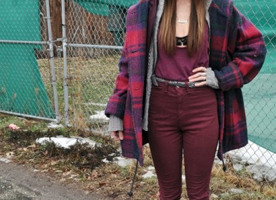 One of these ideas has been fashioning unique color palettes. Ashley frequently wears, creates and paints in palettes she finds “slightly awkward, but still go together in a cute and interesting way,” she says. One of her favorite color combinations right now is maroon and grey.