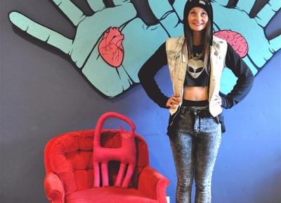 Much of Ashley’s edge has been nurtured by her love of thrifting, street art and the punk style she has growing up. “Part of being a punk was about taking your clothes apart and finding a fly way to put them back together,” says Ashley. “I would love if everyone went to the thrift store and altered pieces and gave them a new life. It’s freeing because it requires me to find my own way to find what I want to wear.”